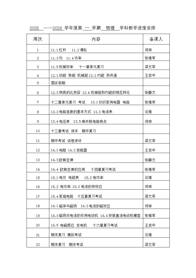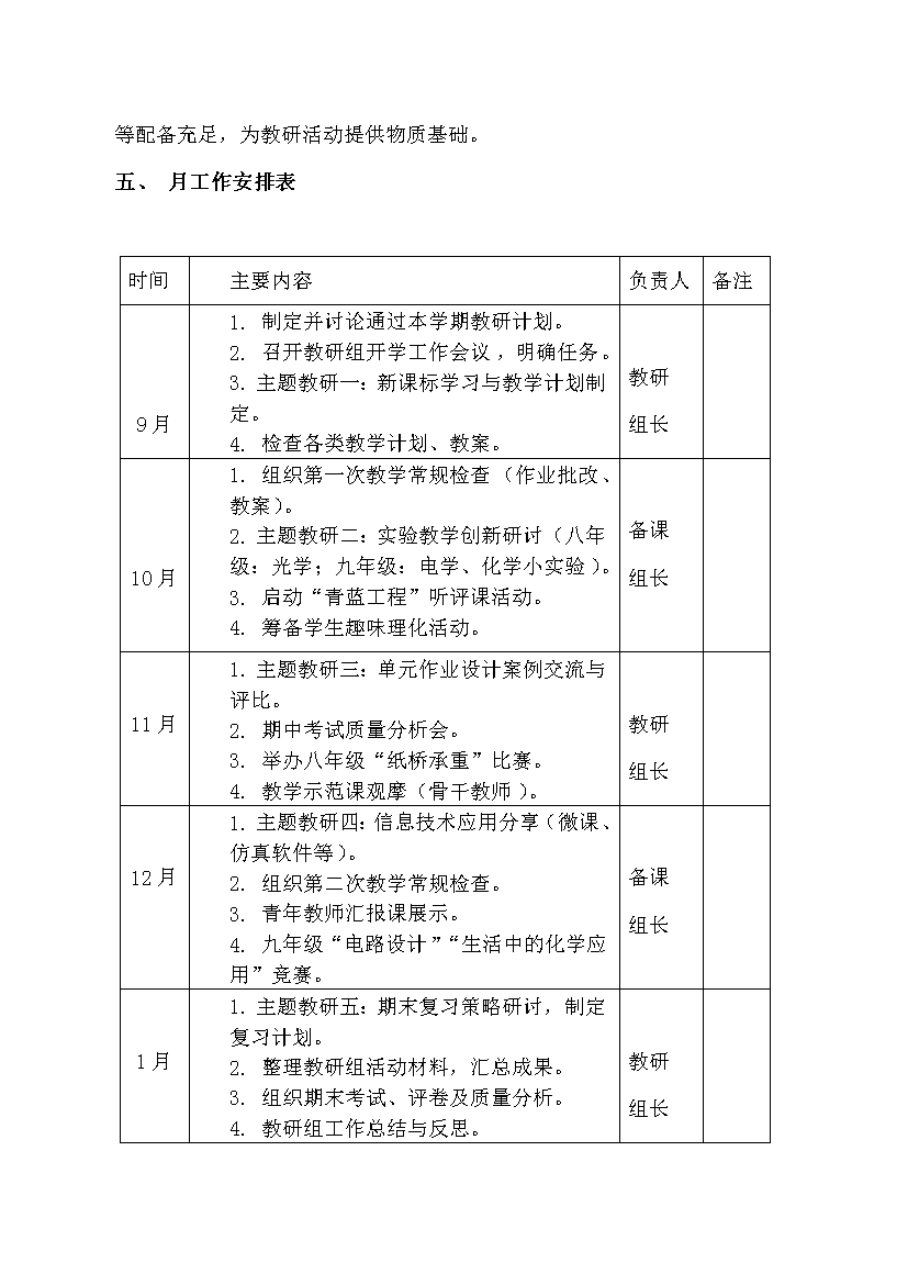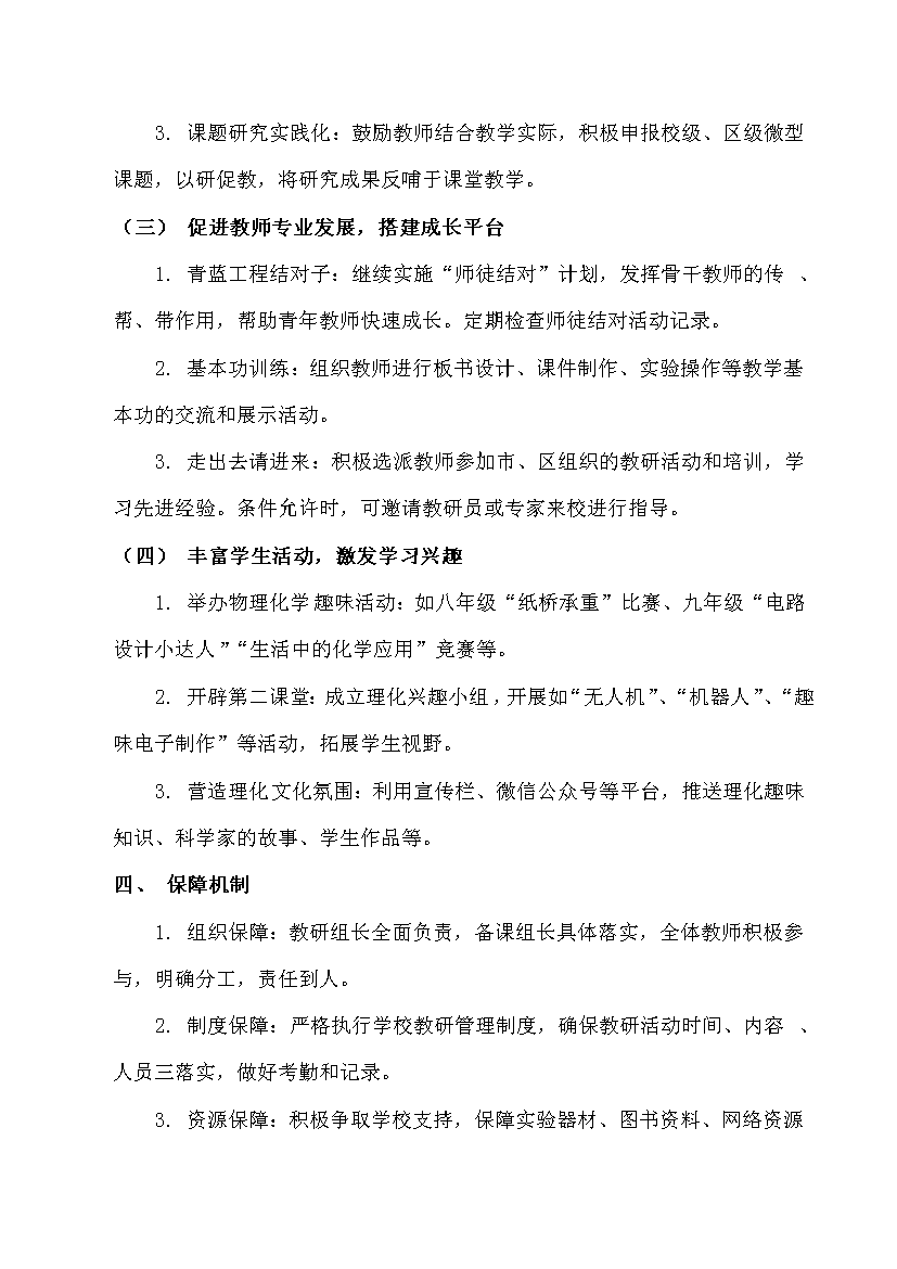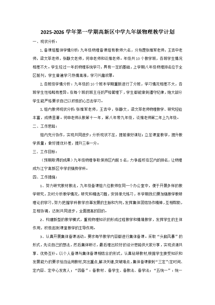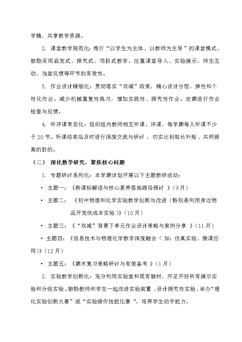南京市江宁高新区中学2025-2026学年度第一学期理化教研组、备课组工作计划
