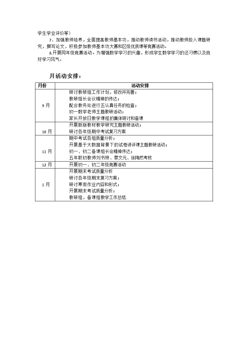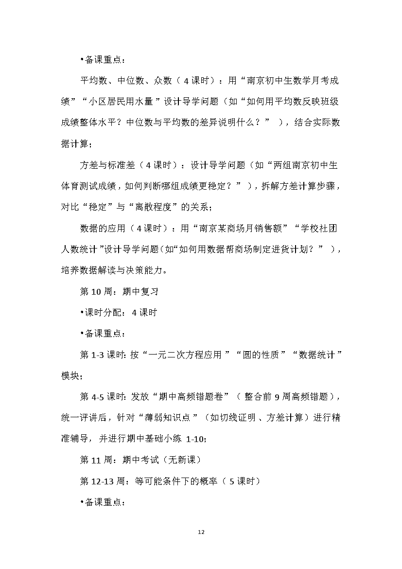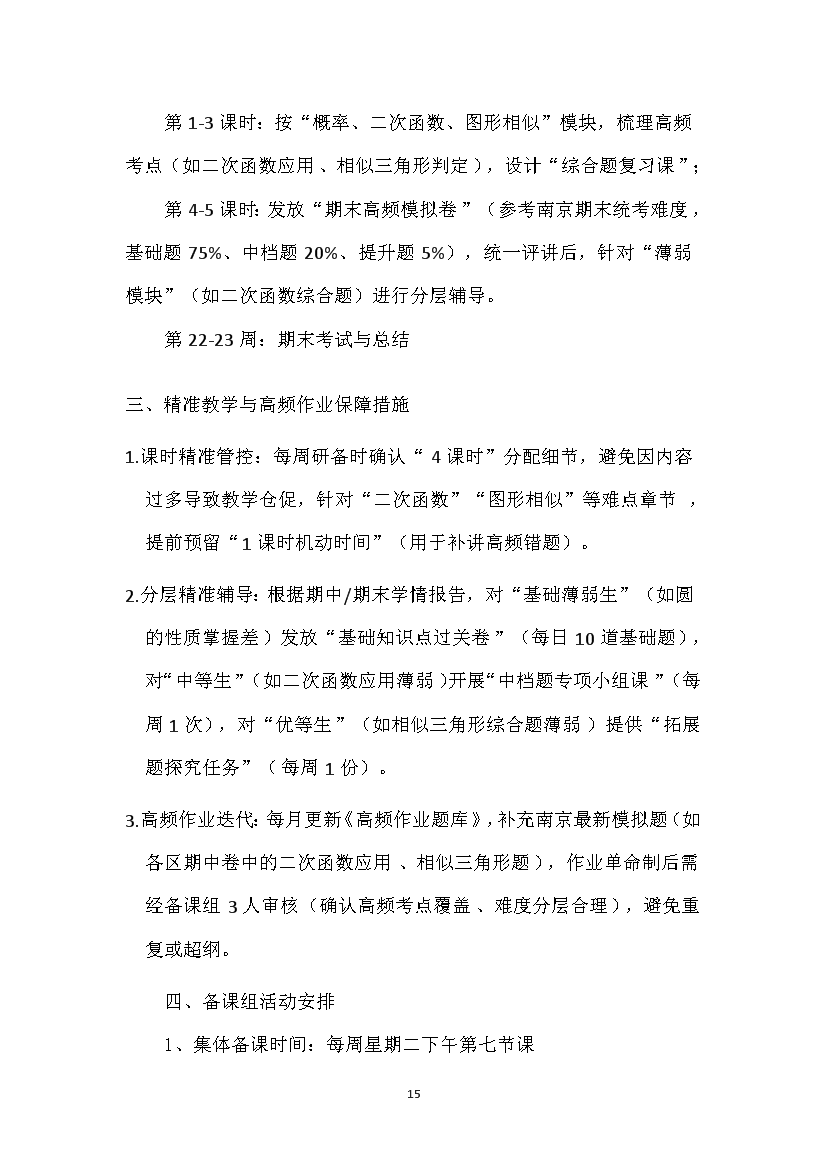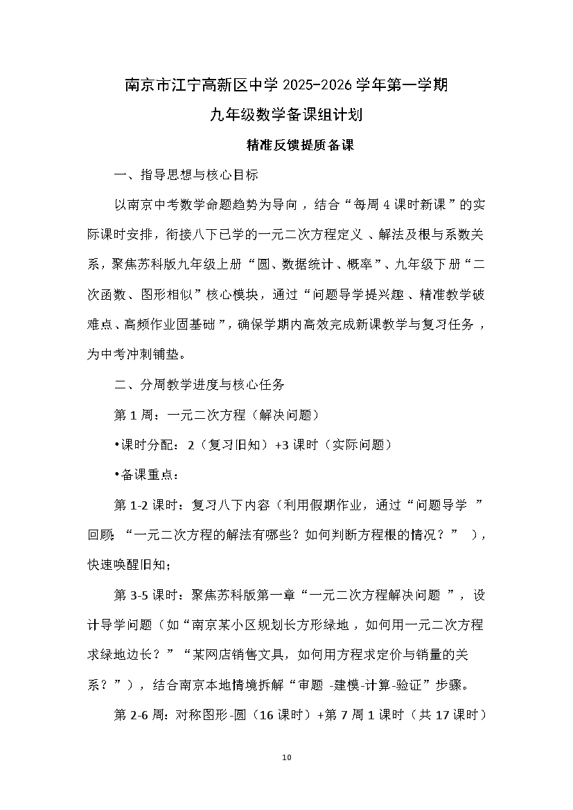 南京市江宁高新区中学2025-2026学年度第一学期数学教研组、备课组工作计划