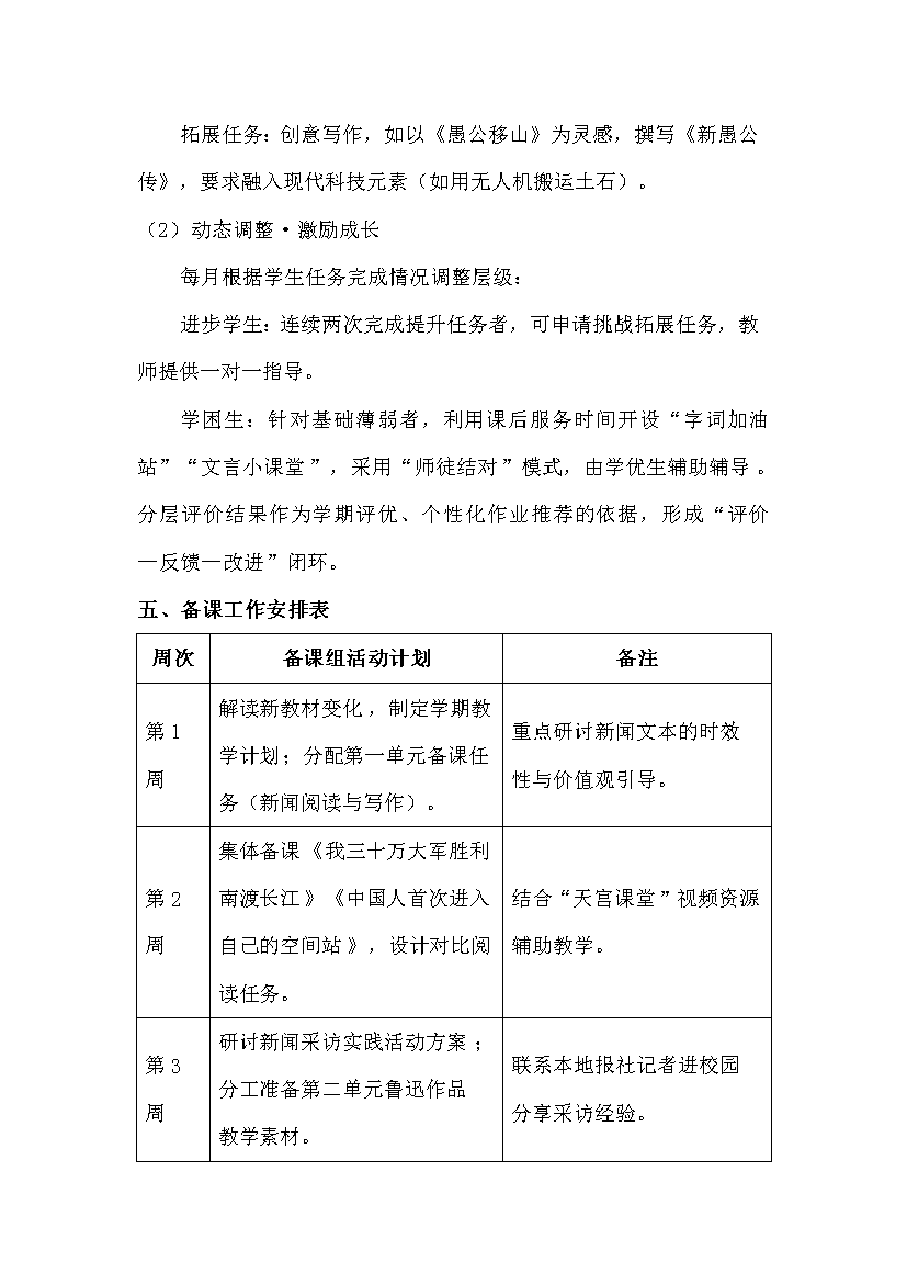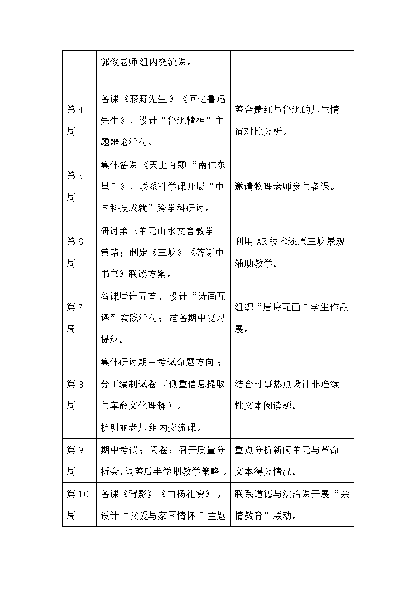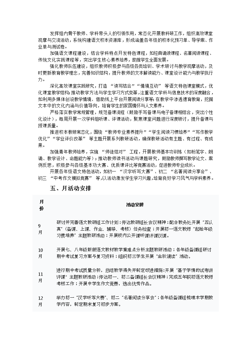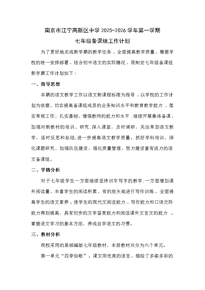 南京市江宁高新区中学2025-2026学年度第一学期语文教研组、备课组工作计划