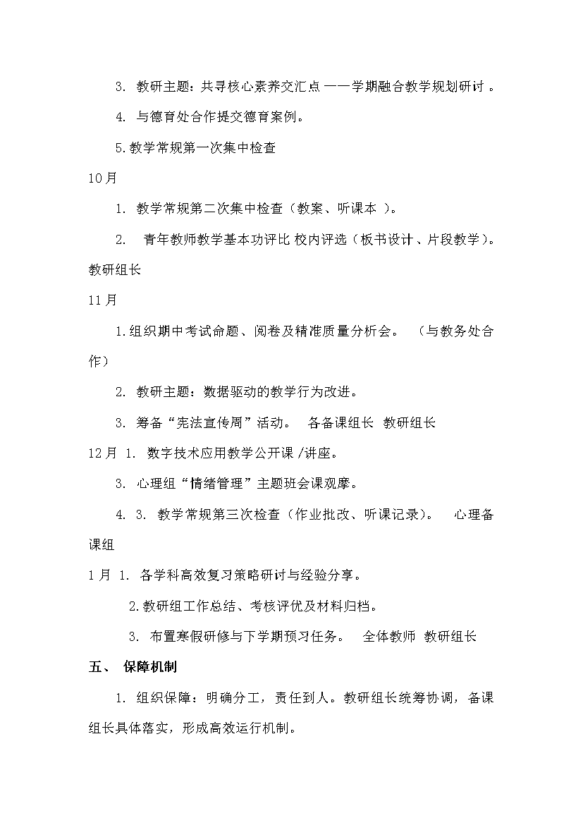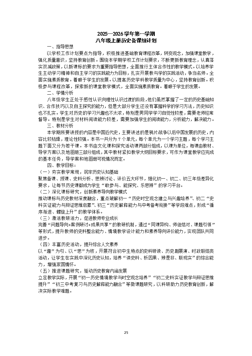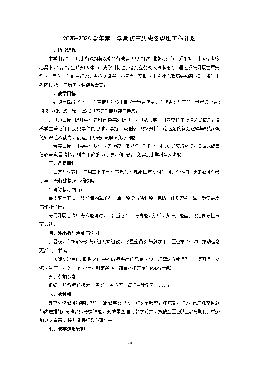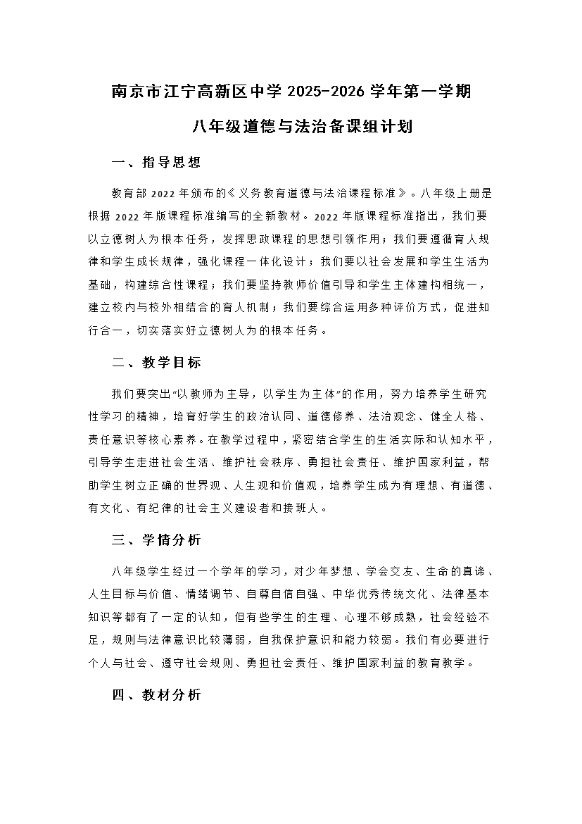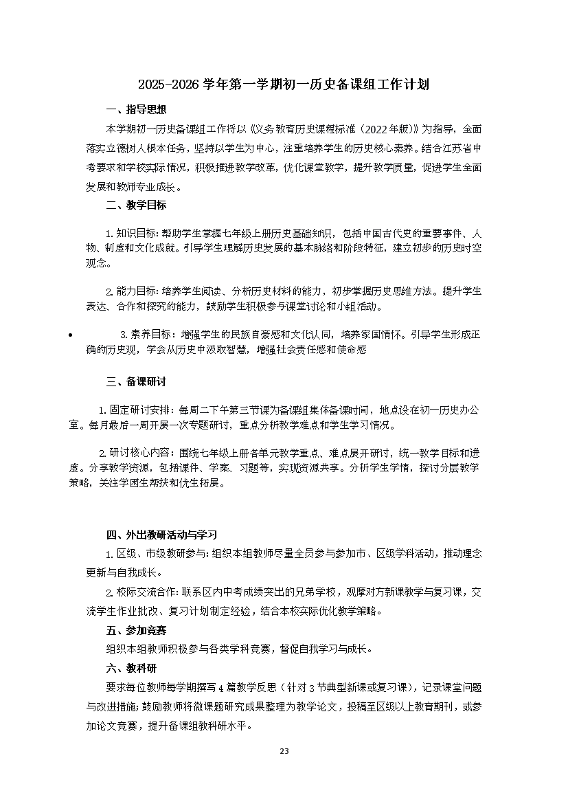 南京市江宁高新区中学2025-2026学年度第一学期政史心教研组、备课组工作计划