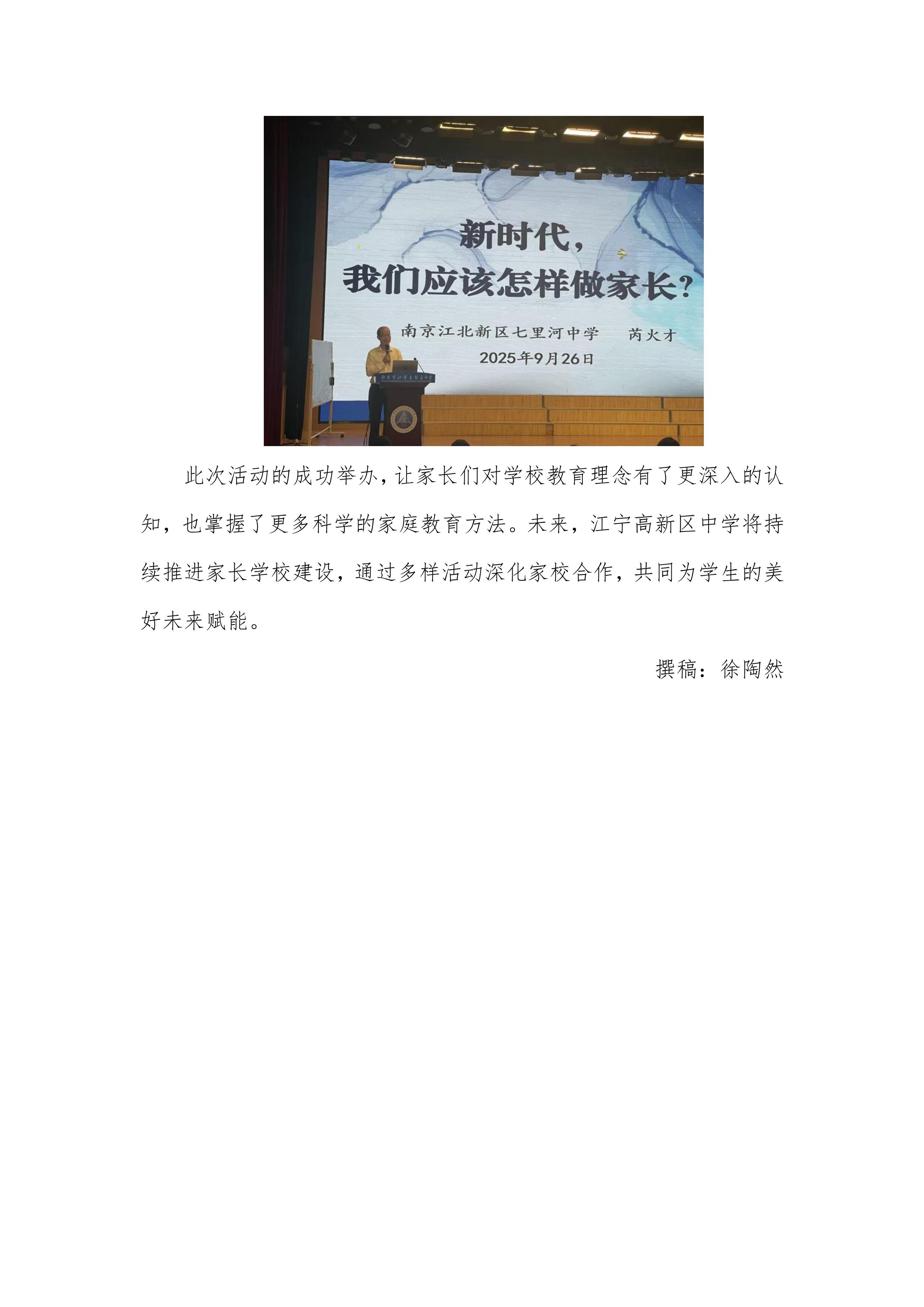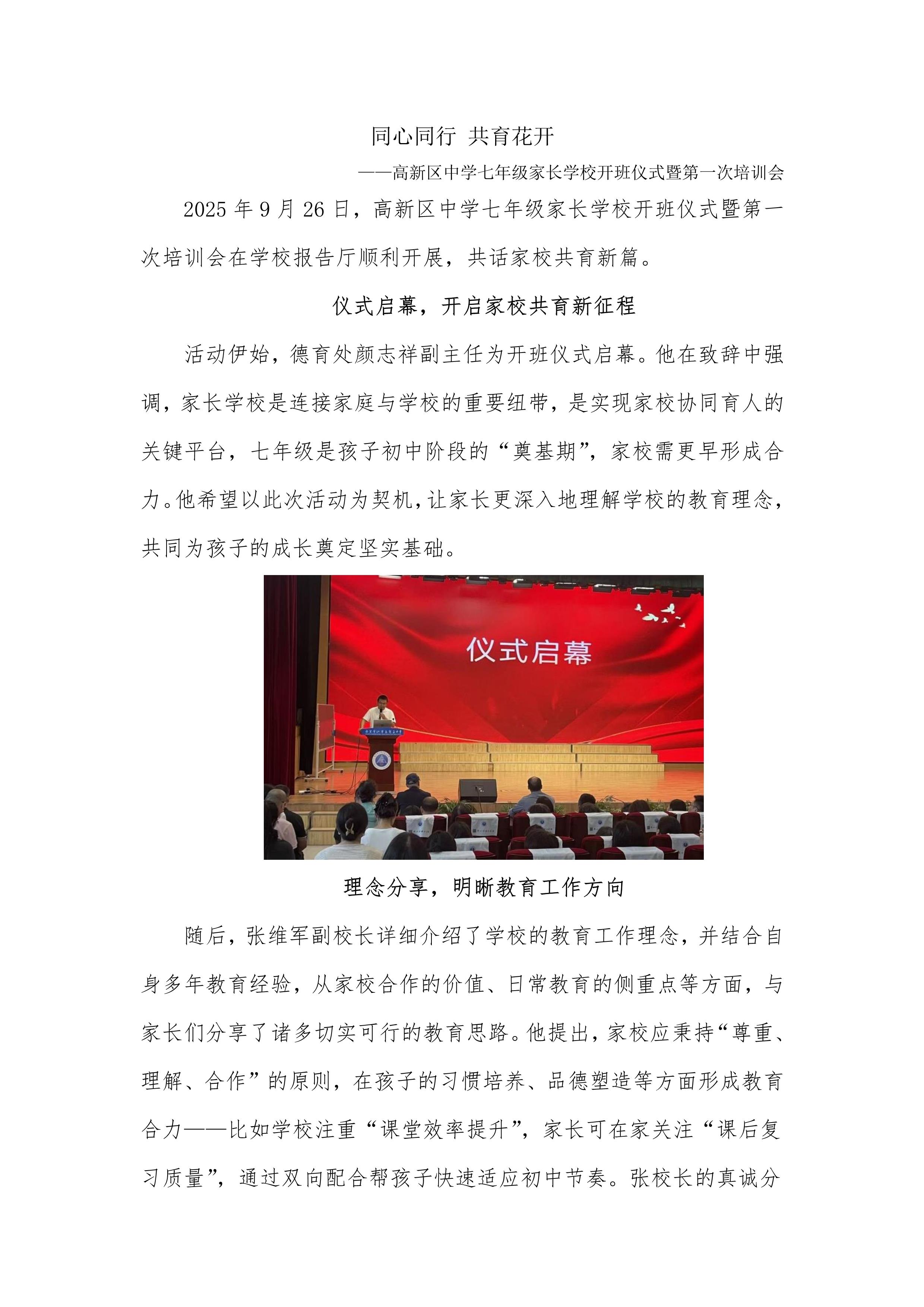 ——高新区中学七年级家长学校开班仪式暨第一次培训会