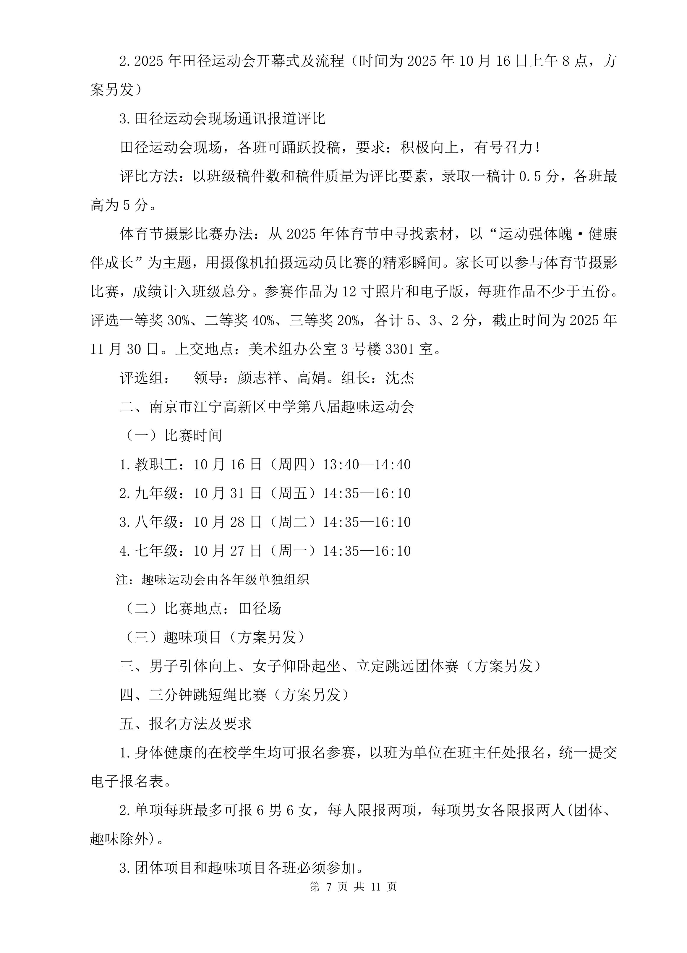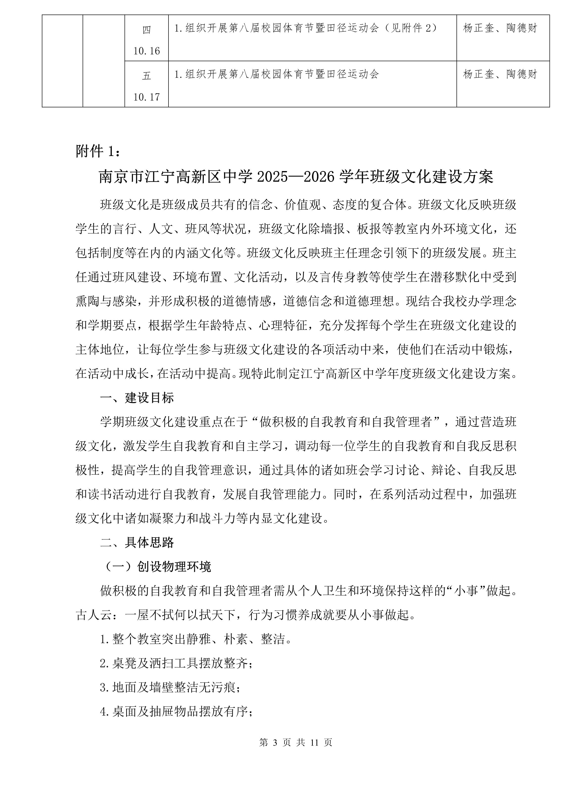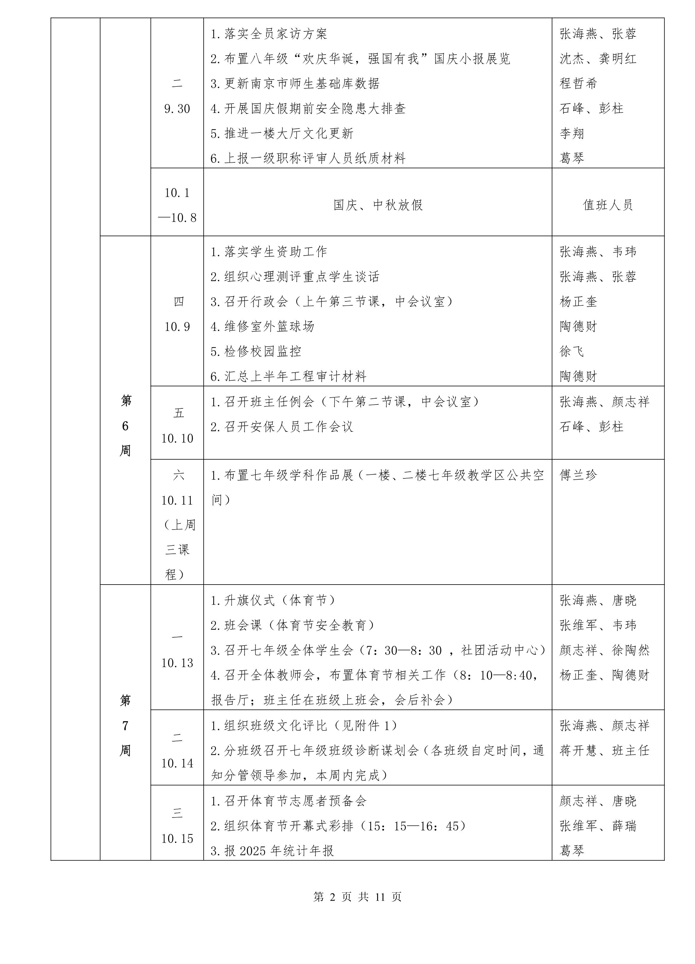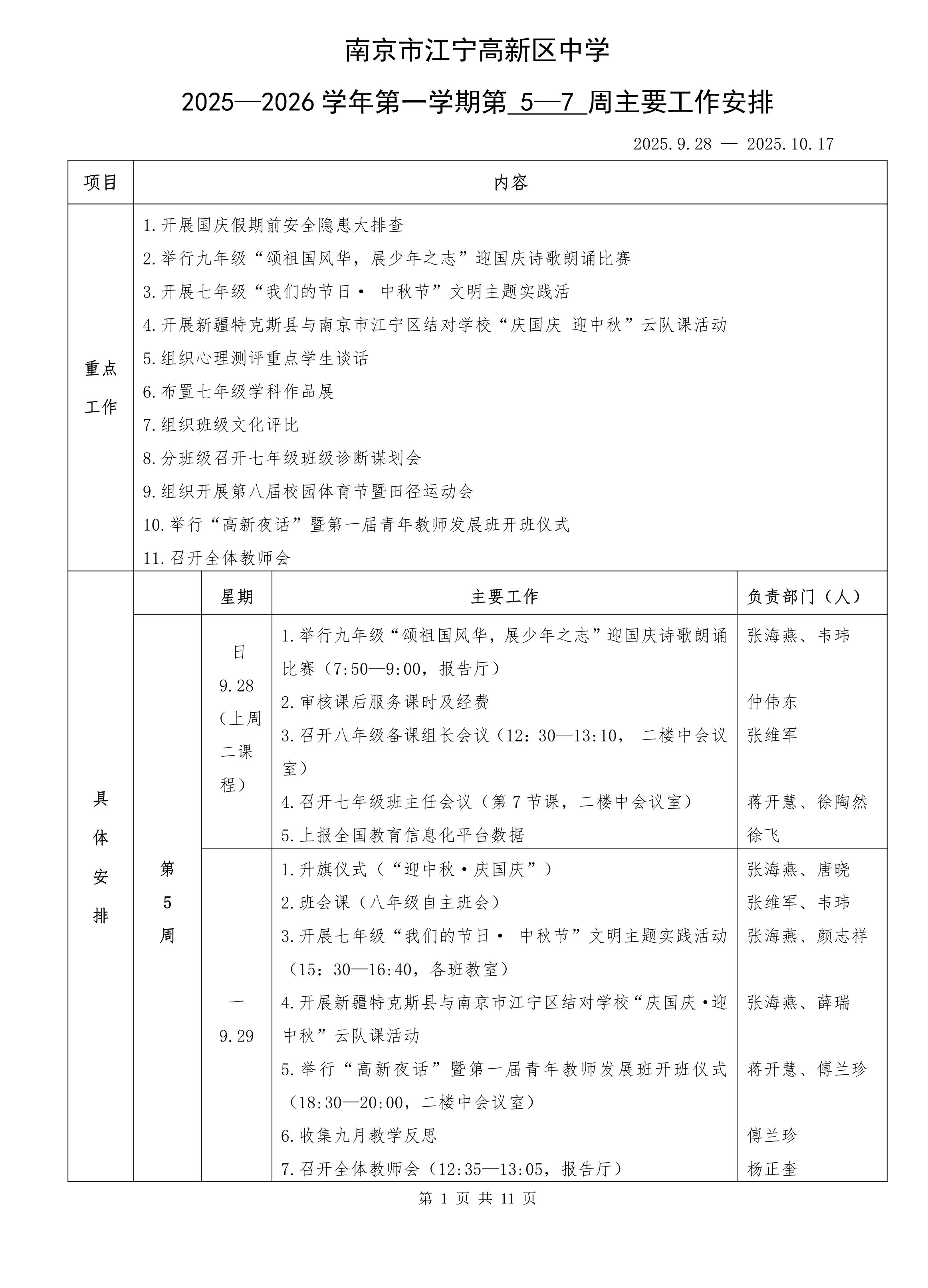 南京市江宁高新区中学2025—2026学年第一学期第5—7周主要工作安排