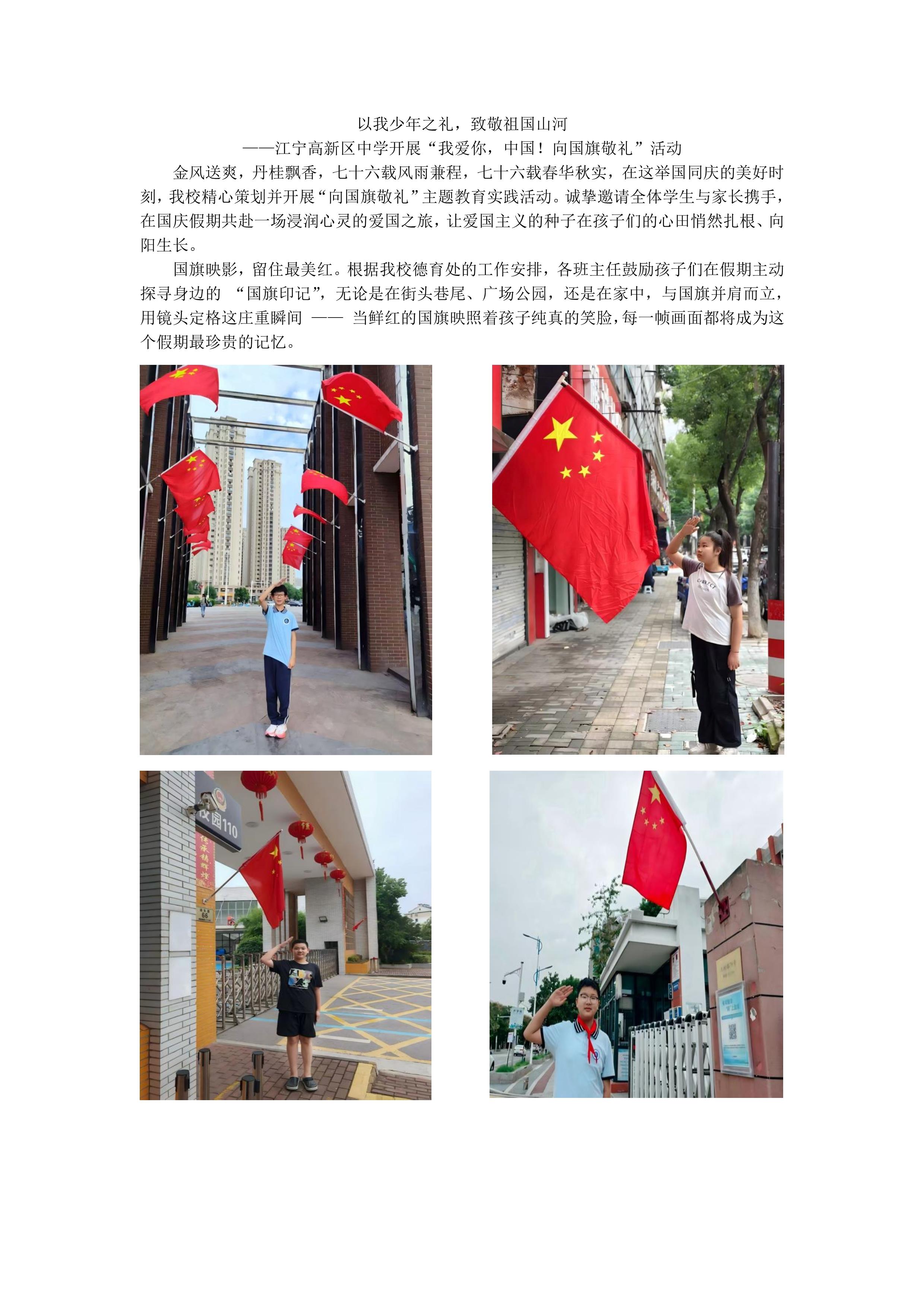 ——江宁高新区中学开展“我爱你,中国!向国旗敬礼”活动