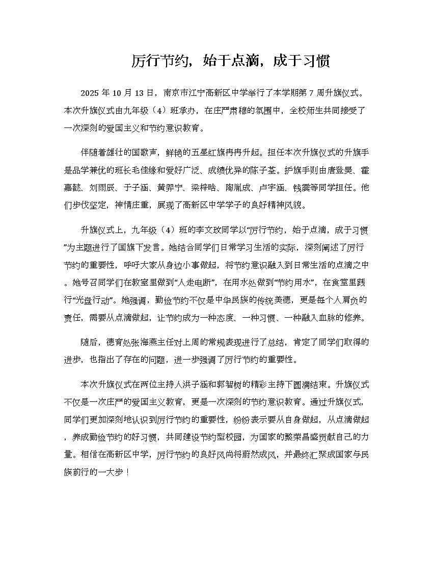 厉行节约,始于点滴,成于习惯
