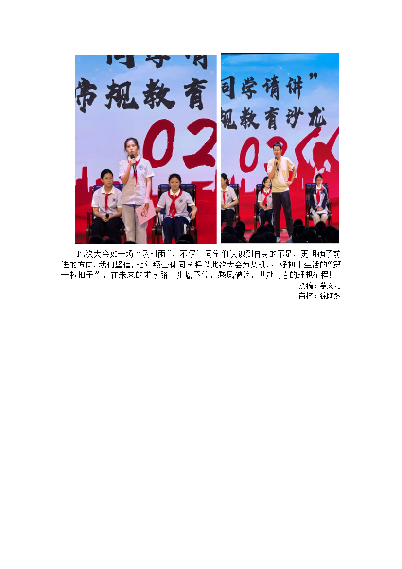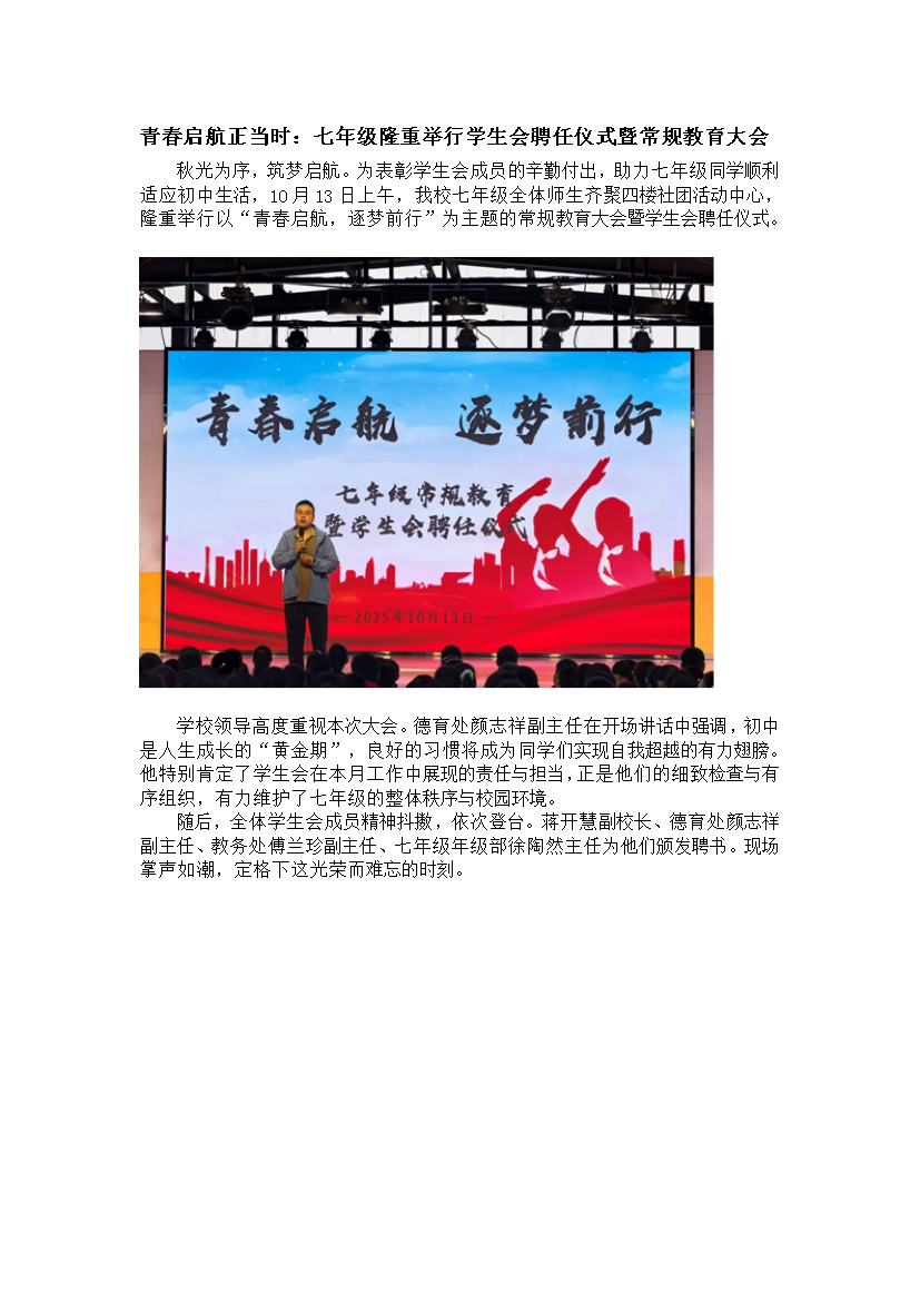 青春启航正当时:七年级隆重举行学生会聘任仪式暨常规教育大会