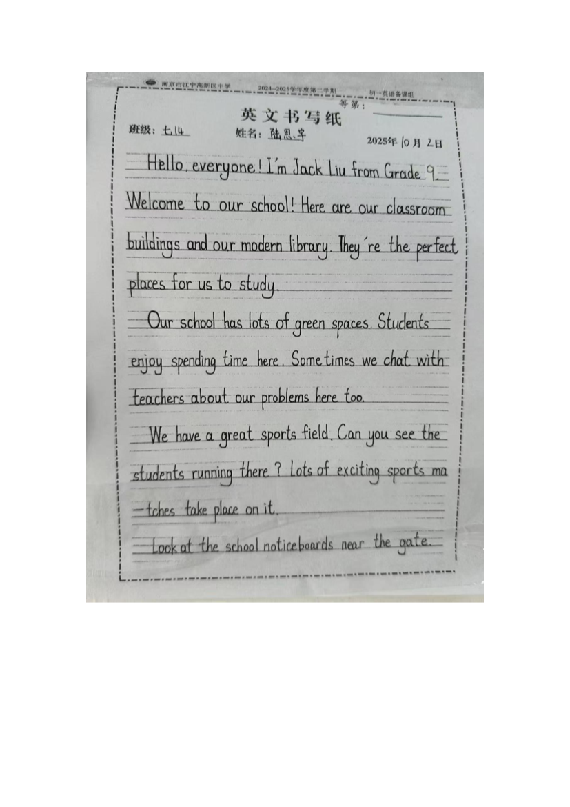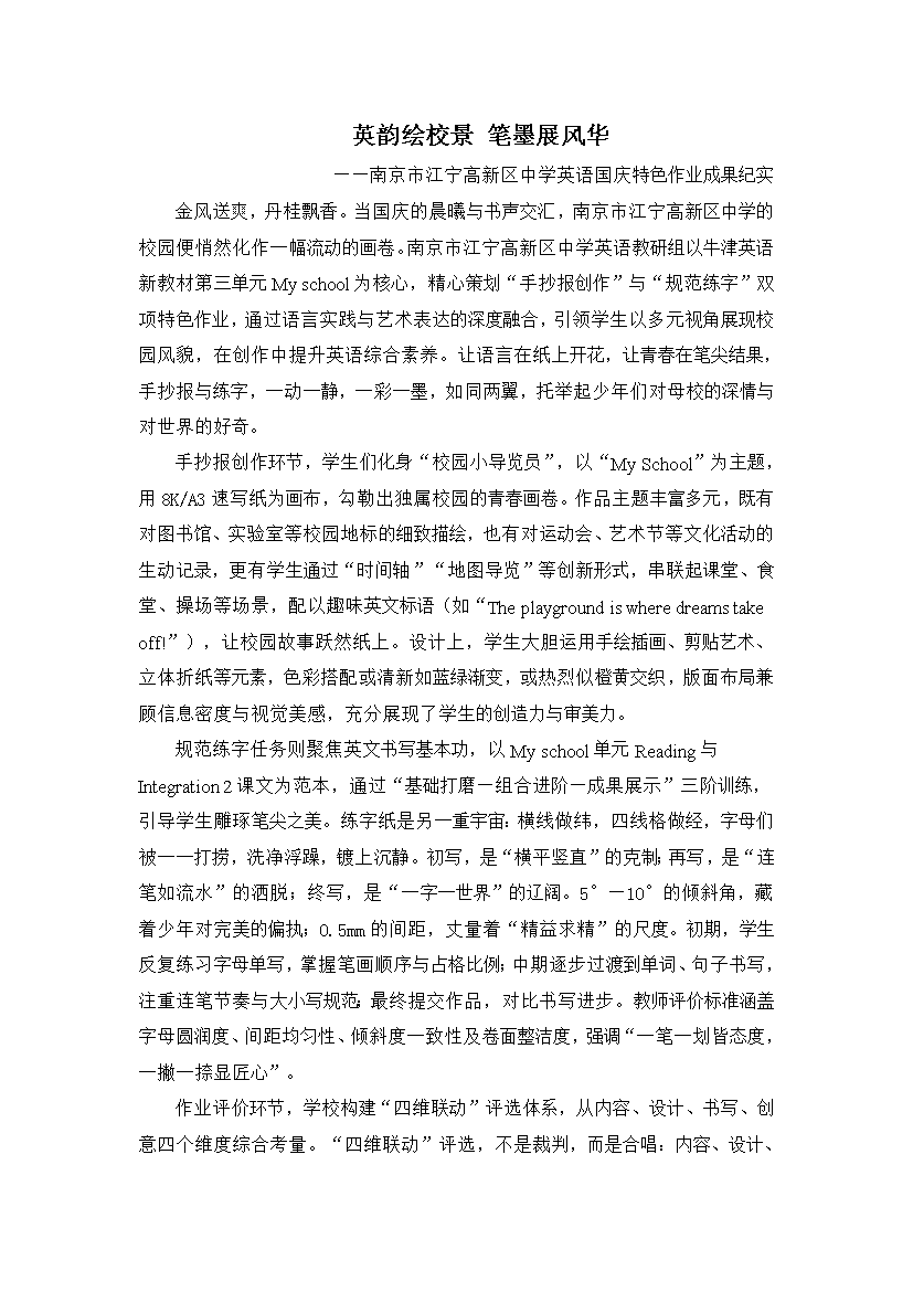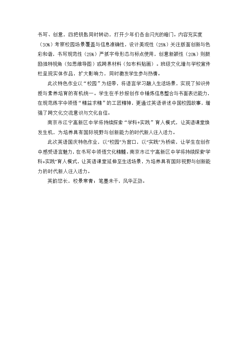 ——南京市江宁高新区中学英语国庆特色作业成果纪实