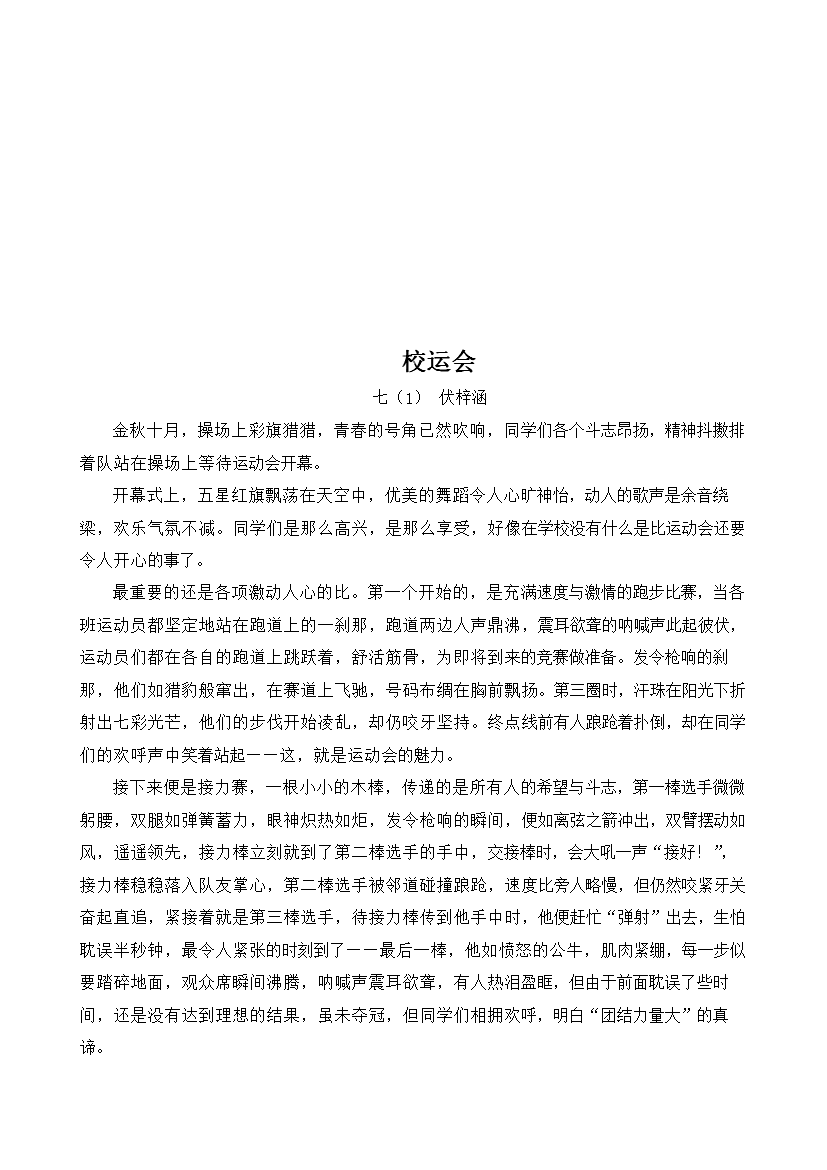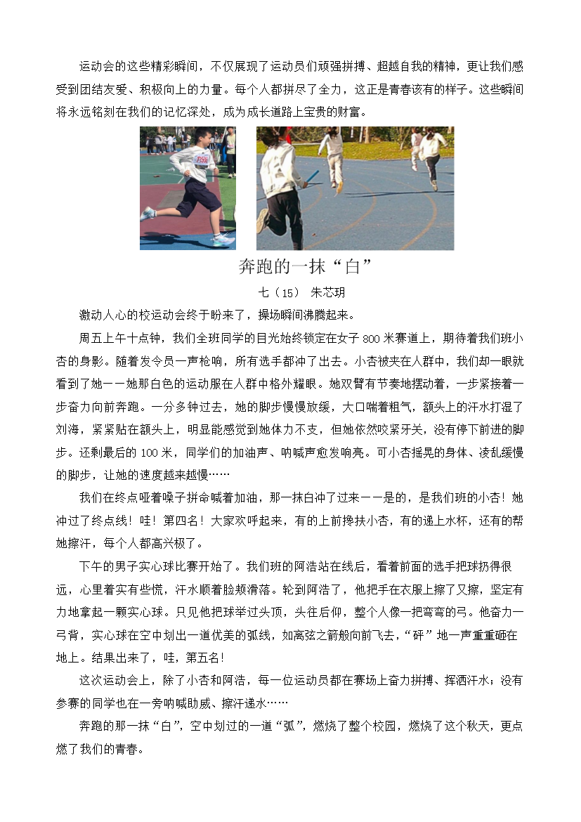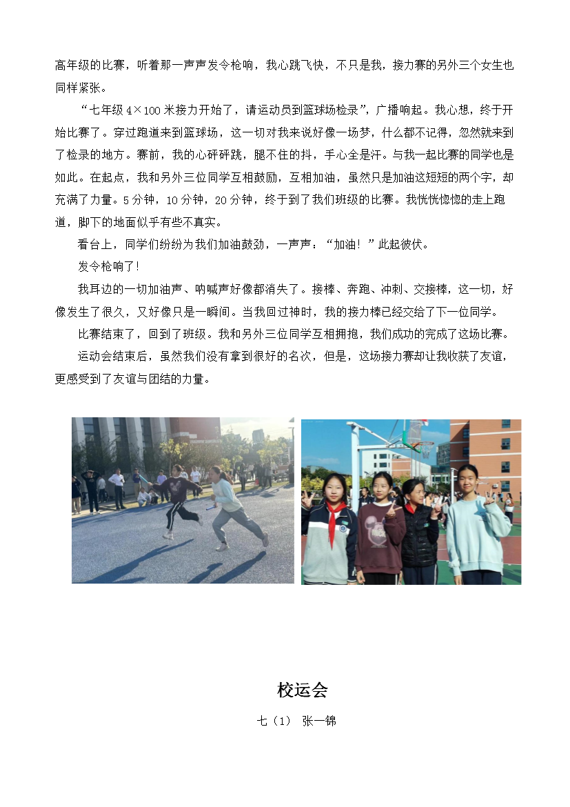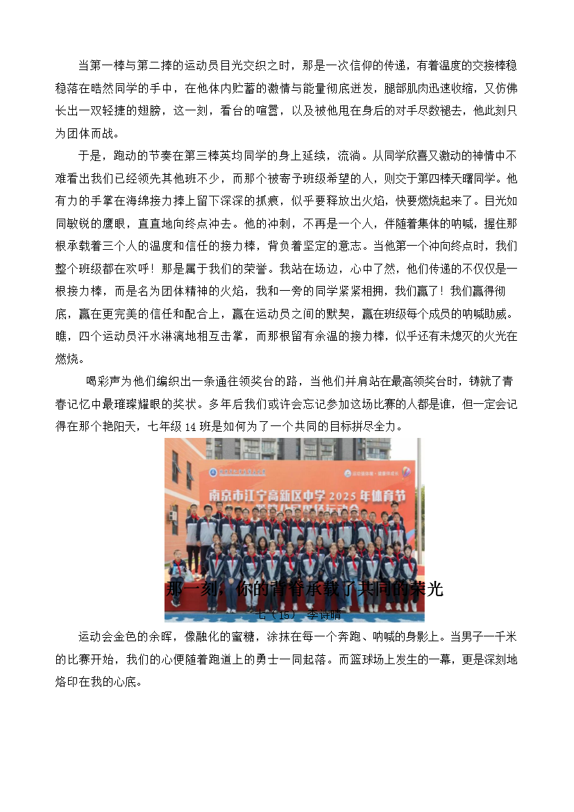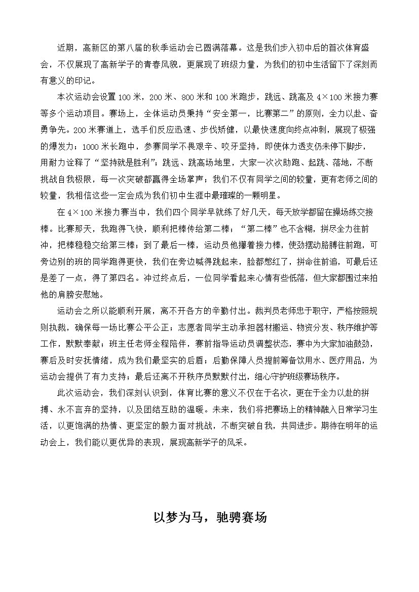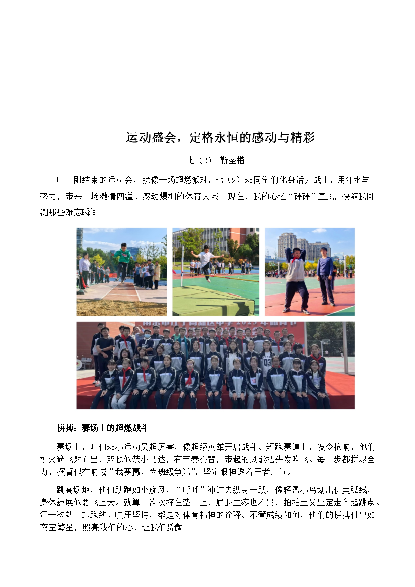 南京市江宁高新区中学第八届田径运动会七年级征文