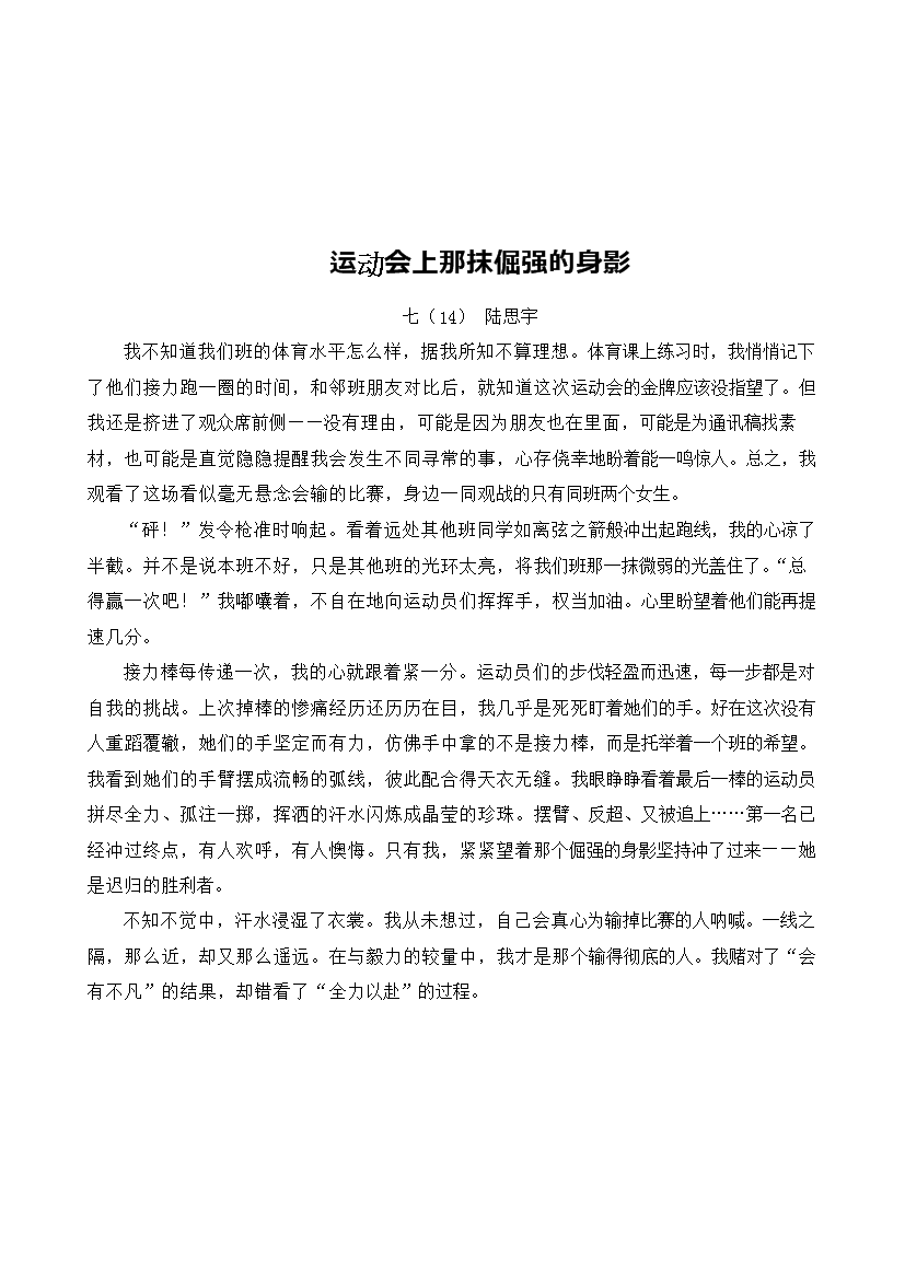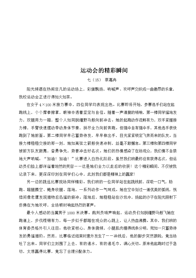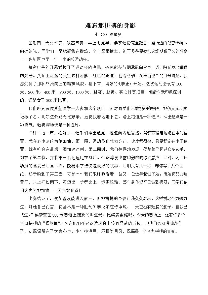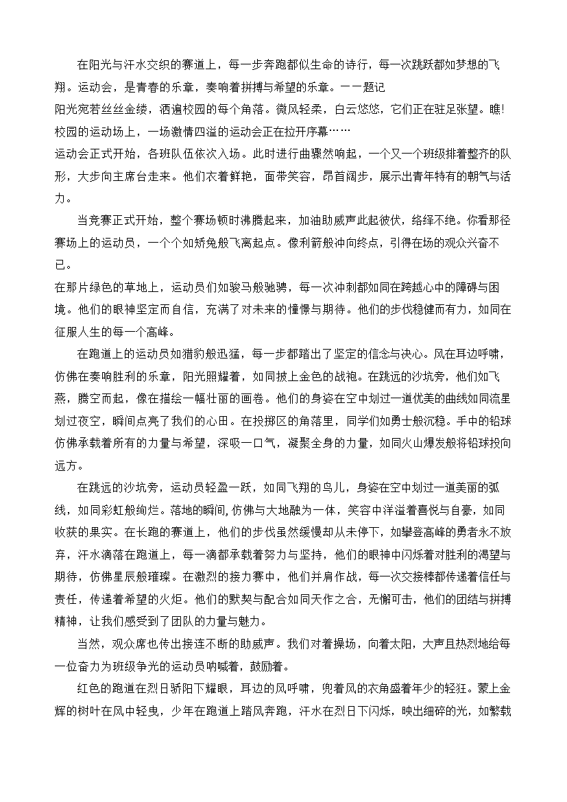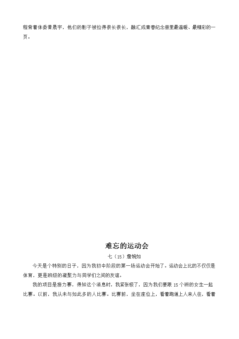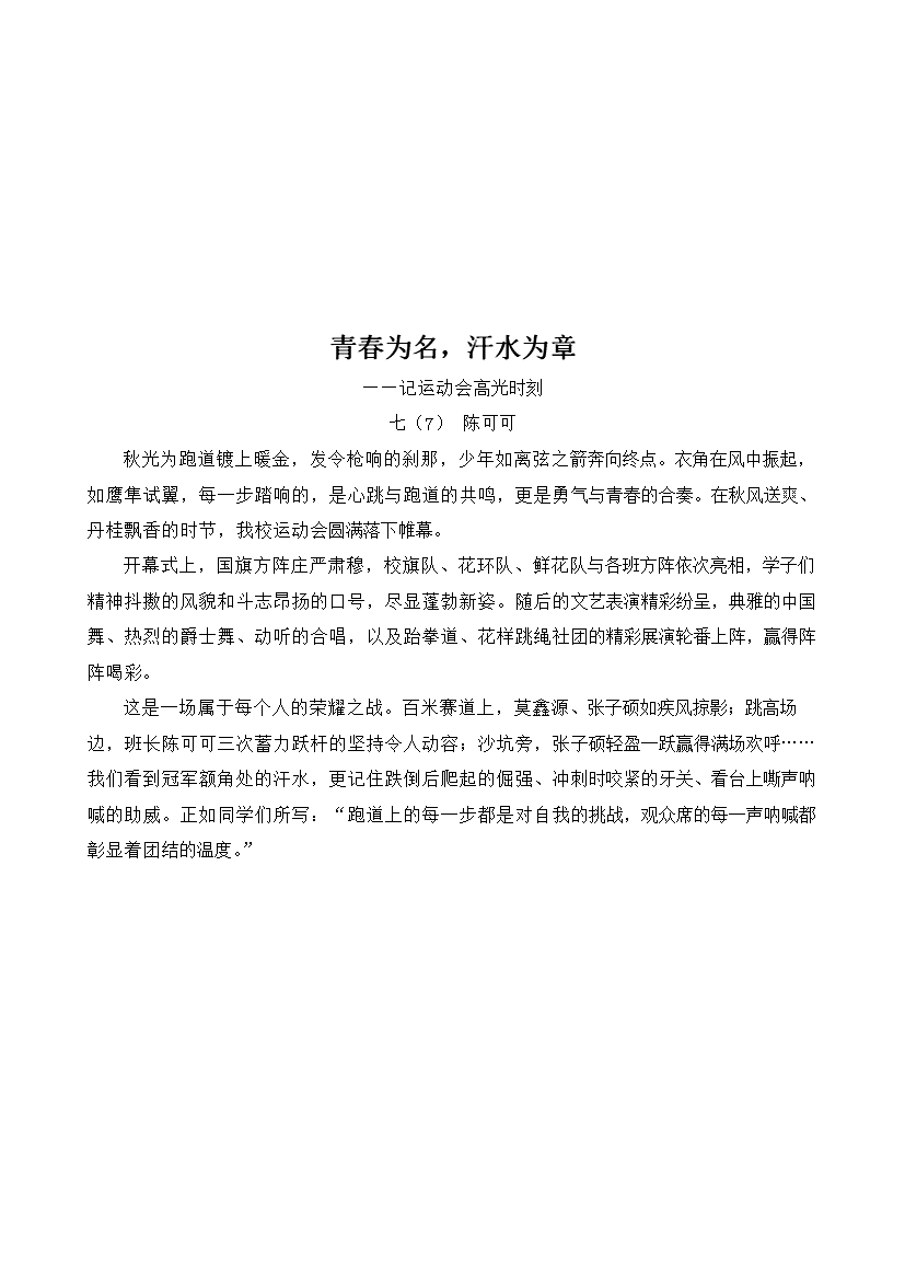南京市江宁高新区中学第八届田径运动会七年级征文