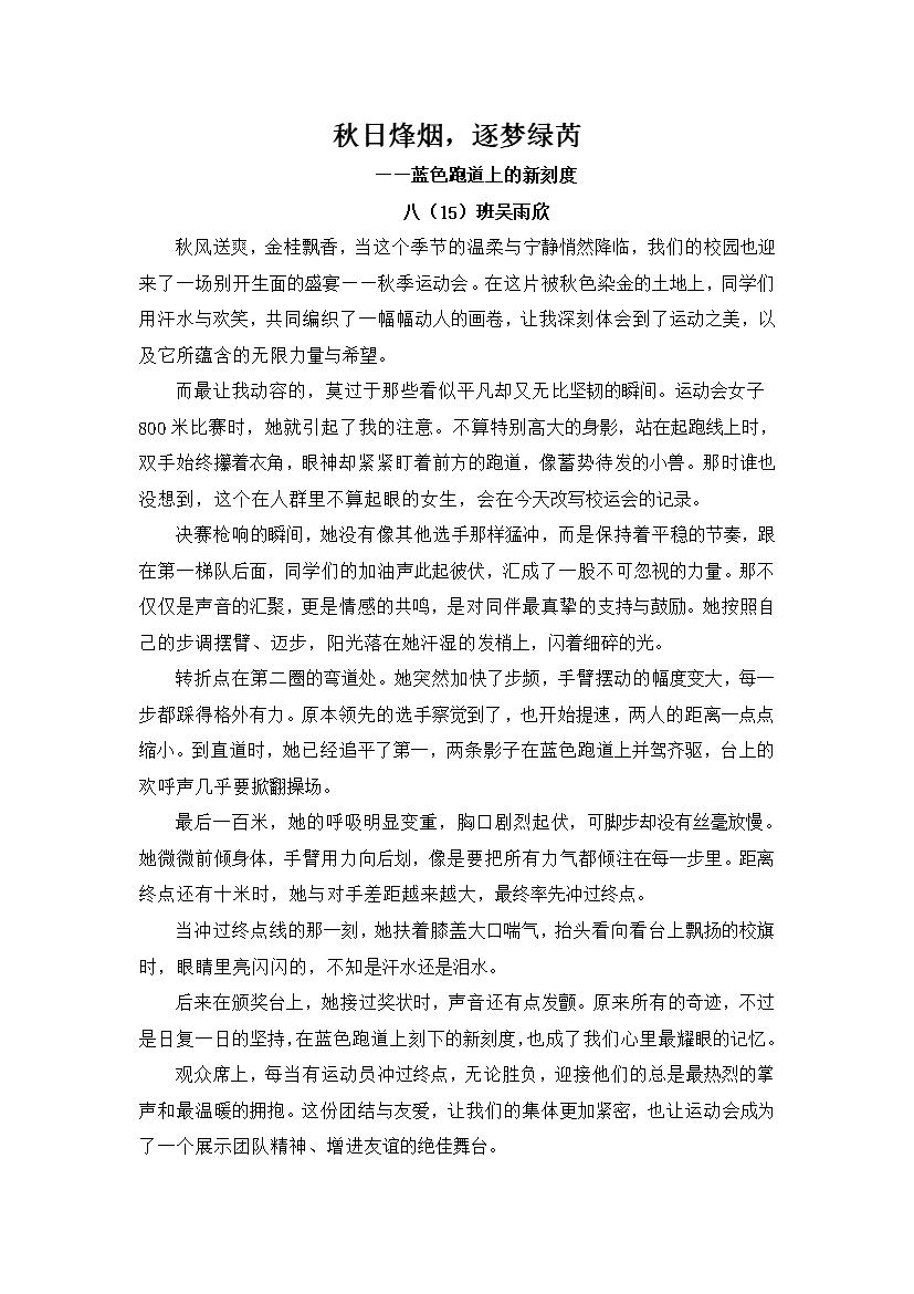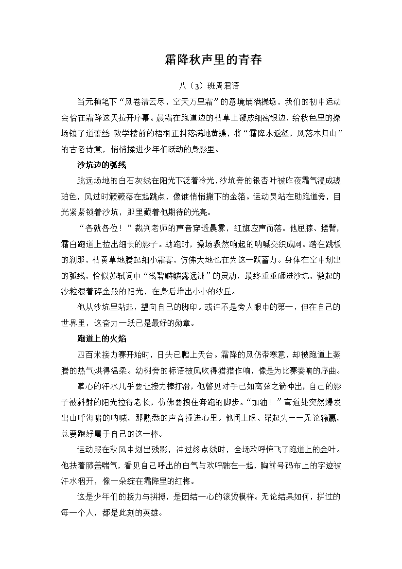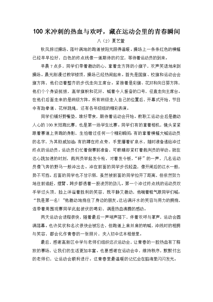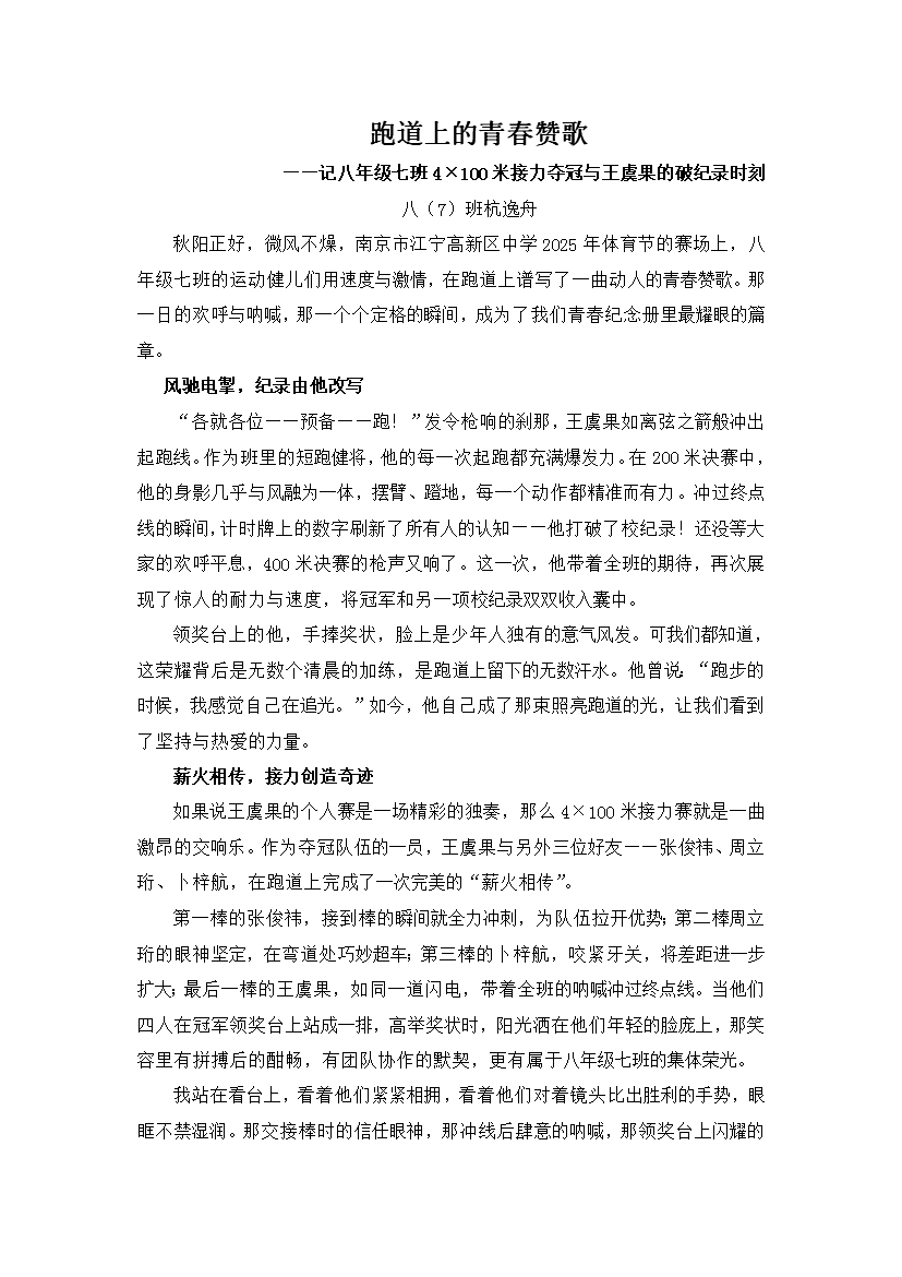 南京市江宁高新区中学第八届田径运动会八年级征文