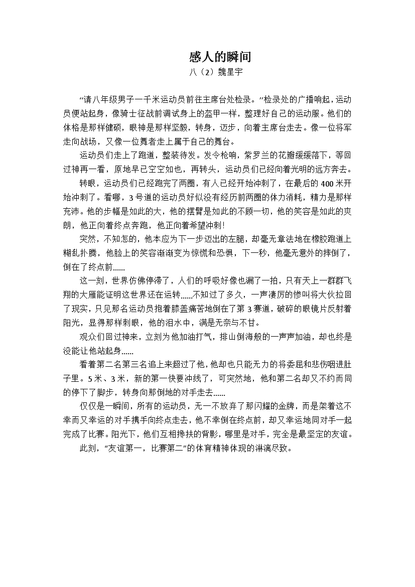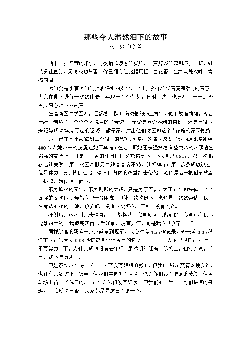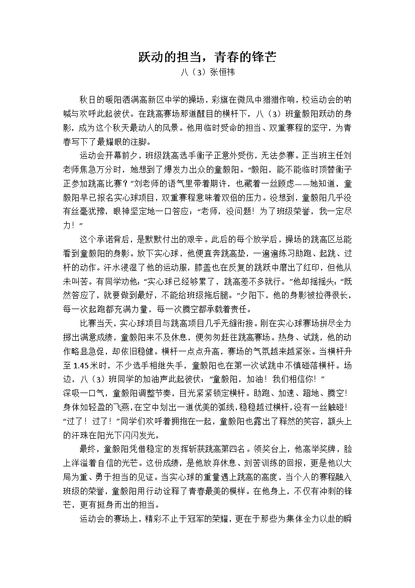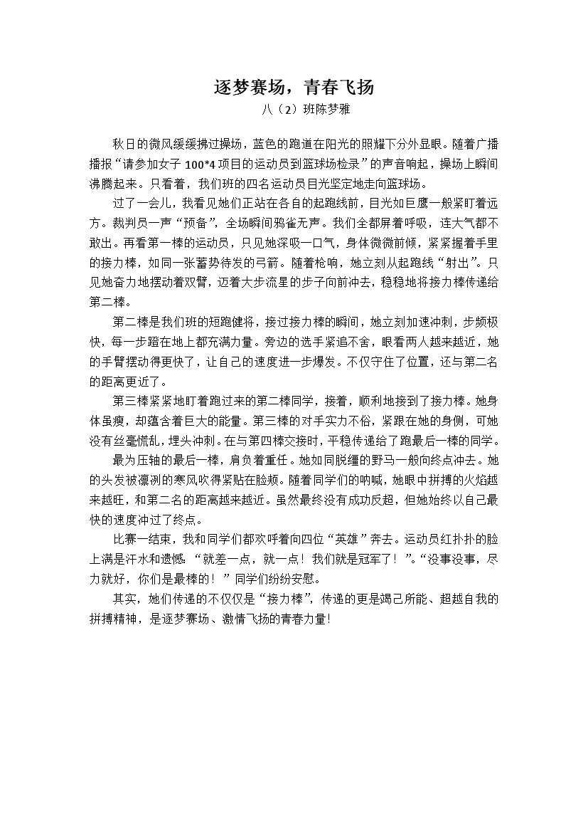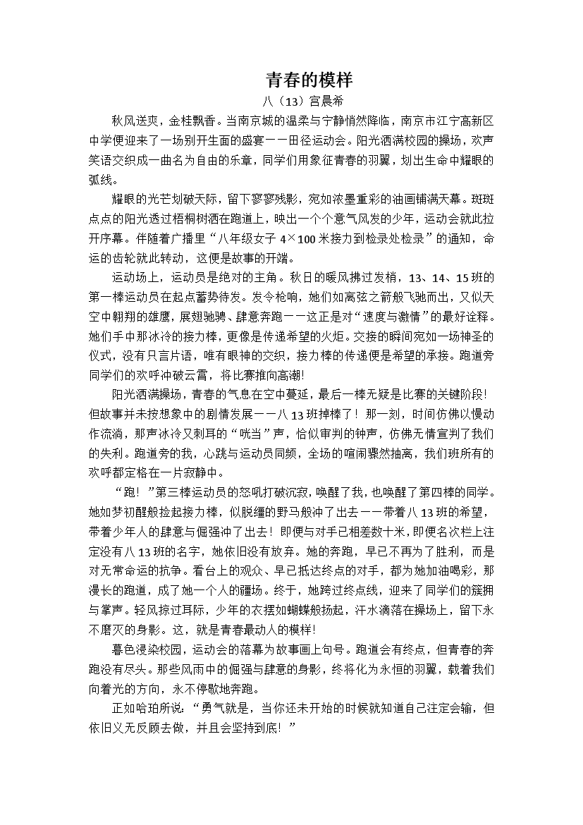 南京市江宁高新区中学第八届田径运动会八年级征文