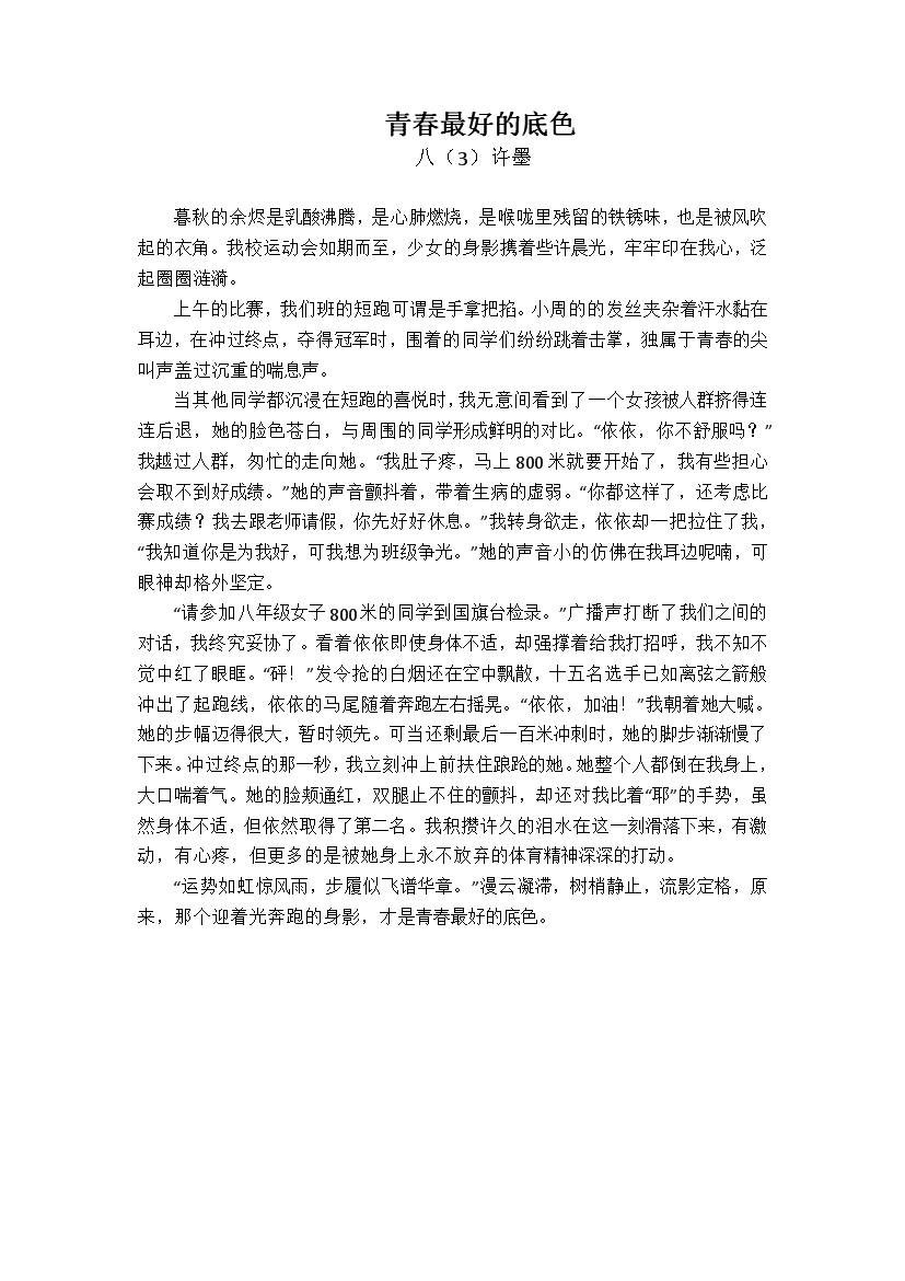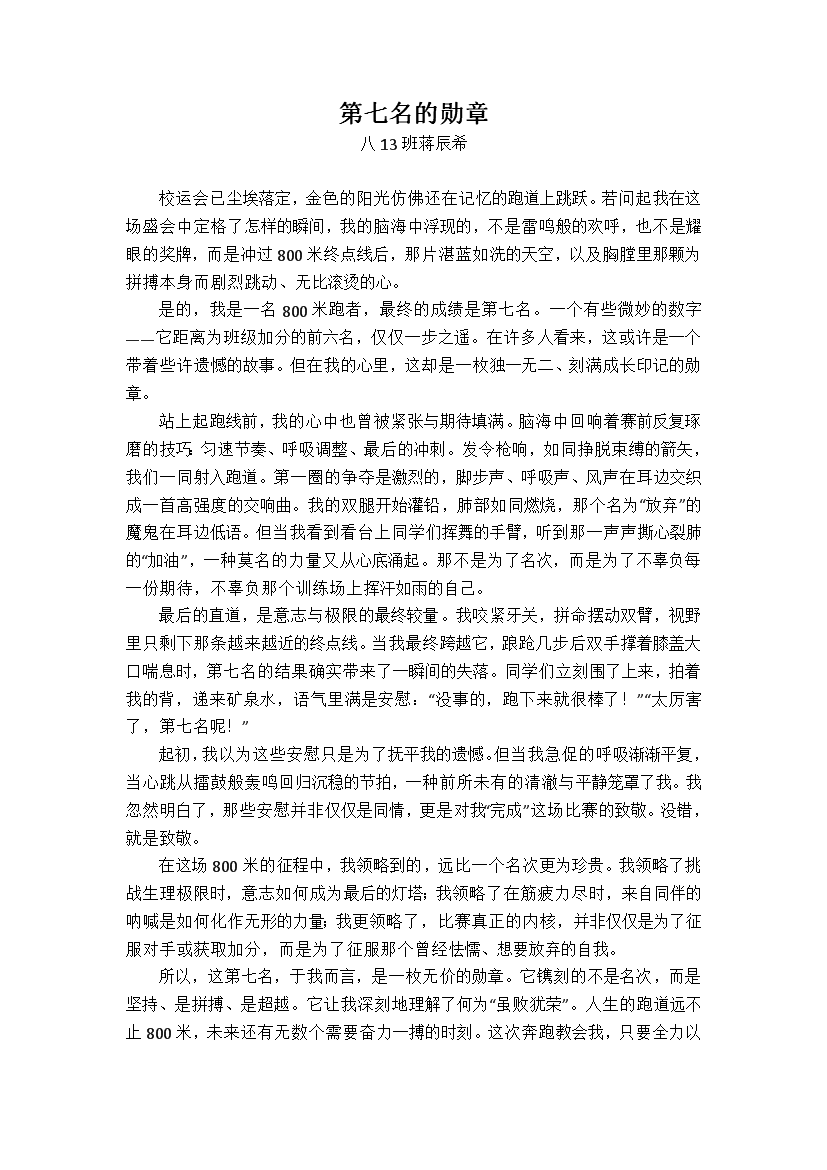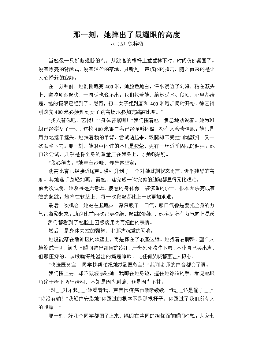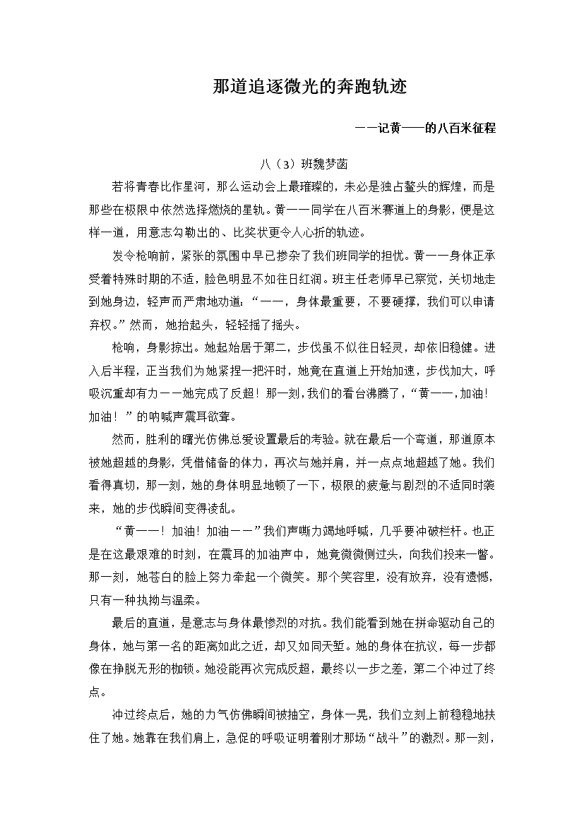 南京市江宁高新区中学第八届田径运动会八年级征文