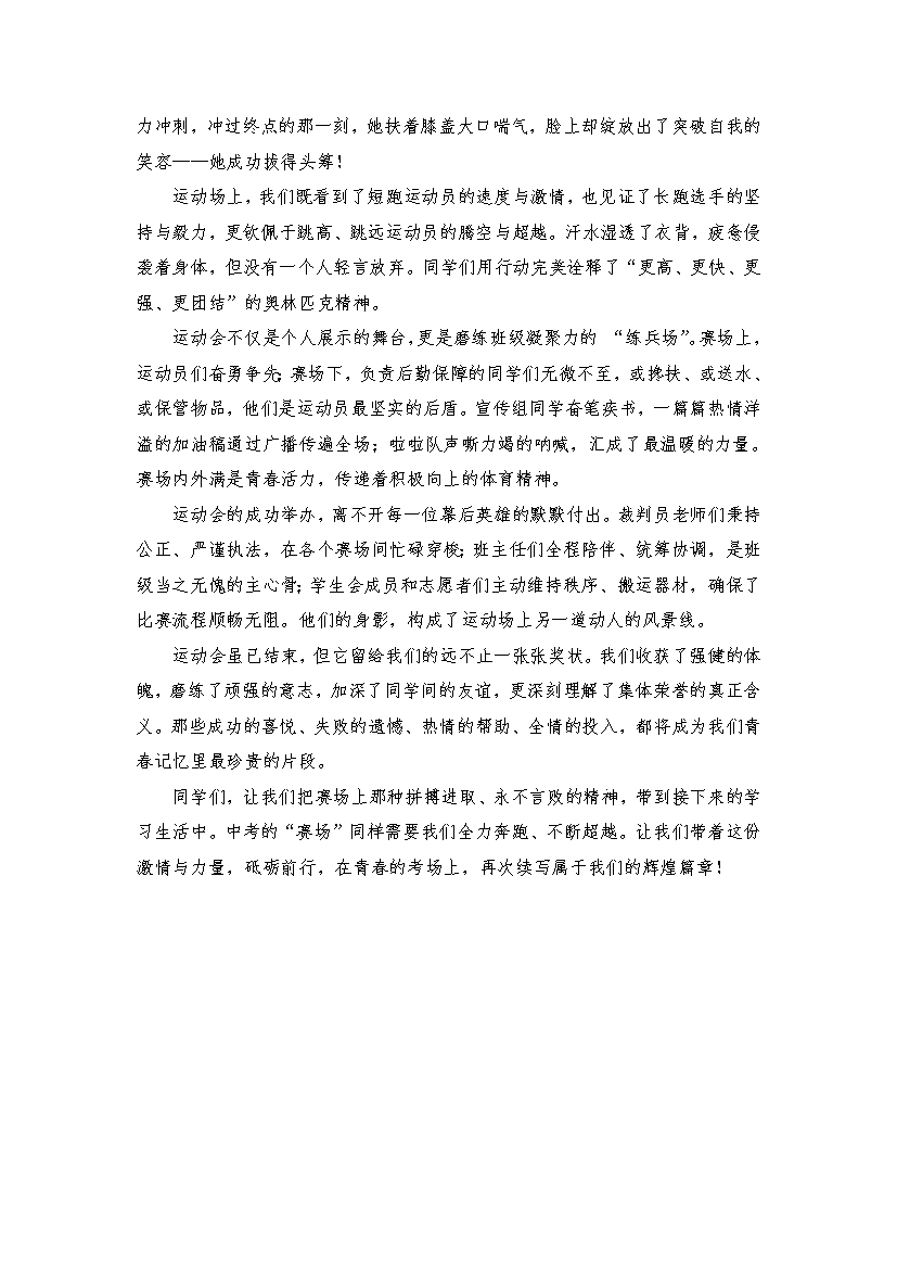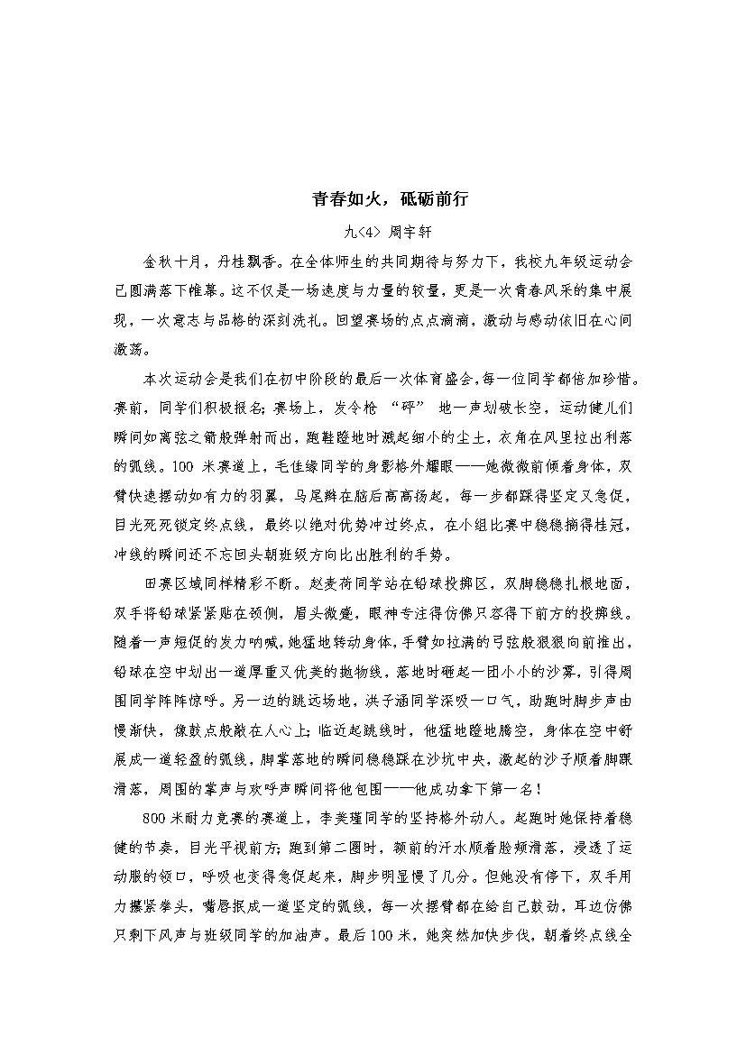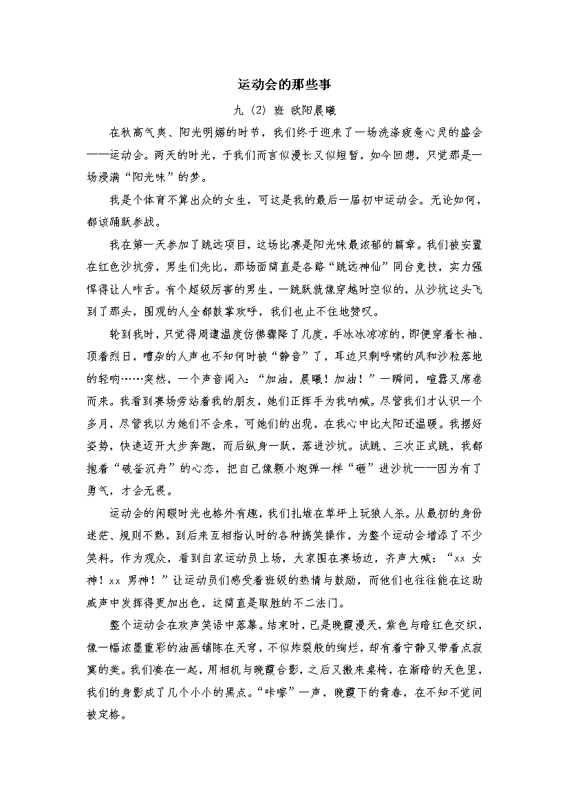 南京市江宁高新区中学第八届田径运动会九年级征文