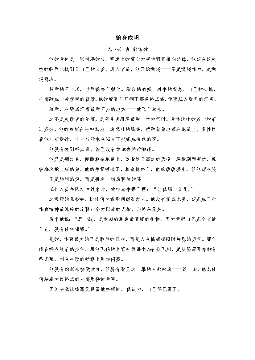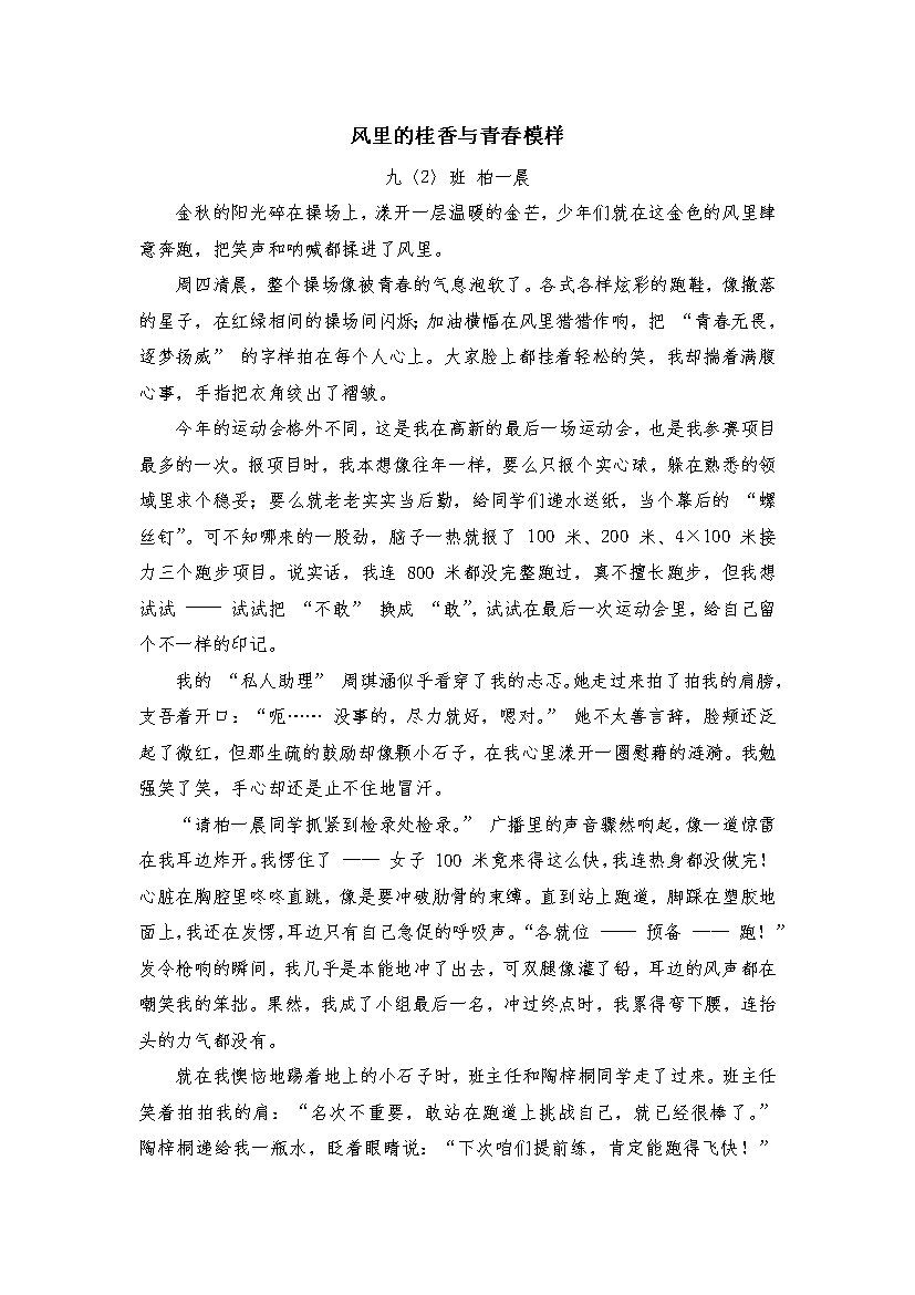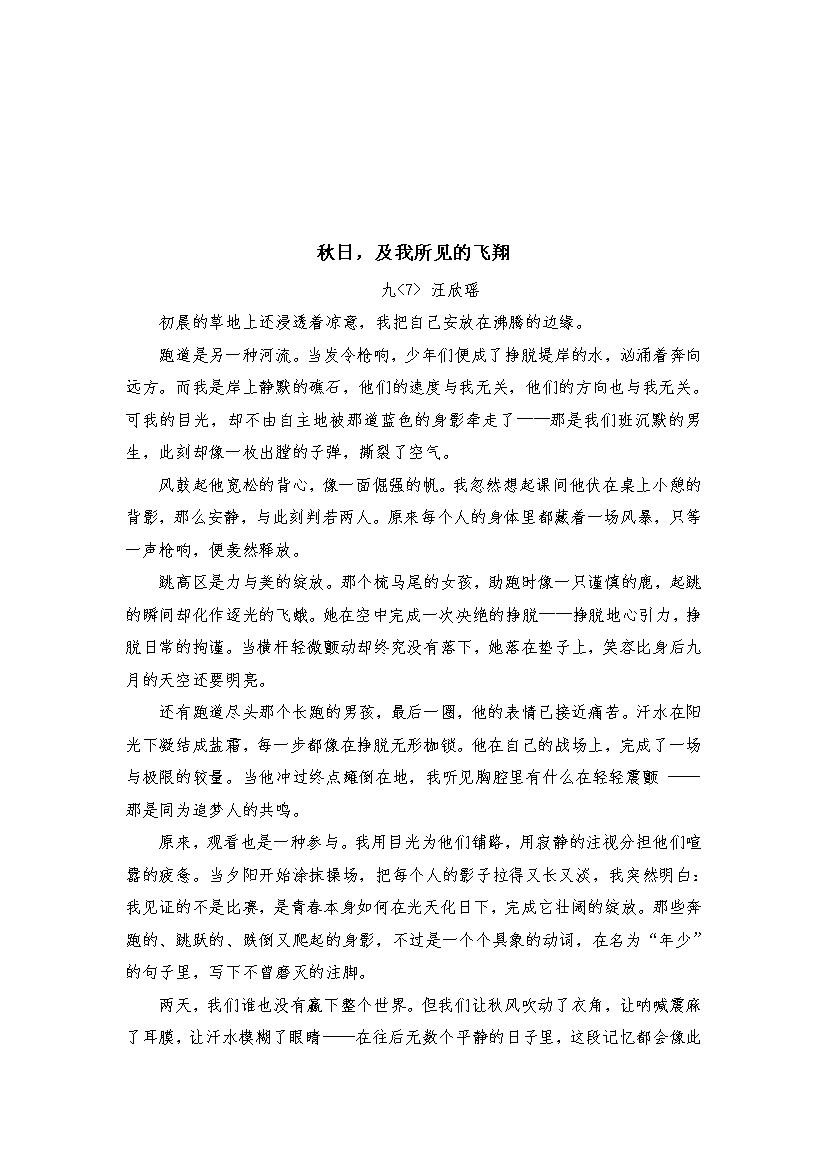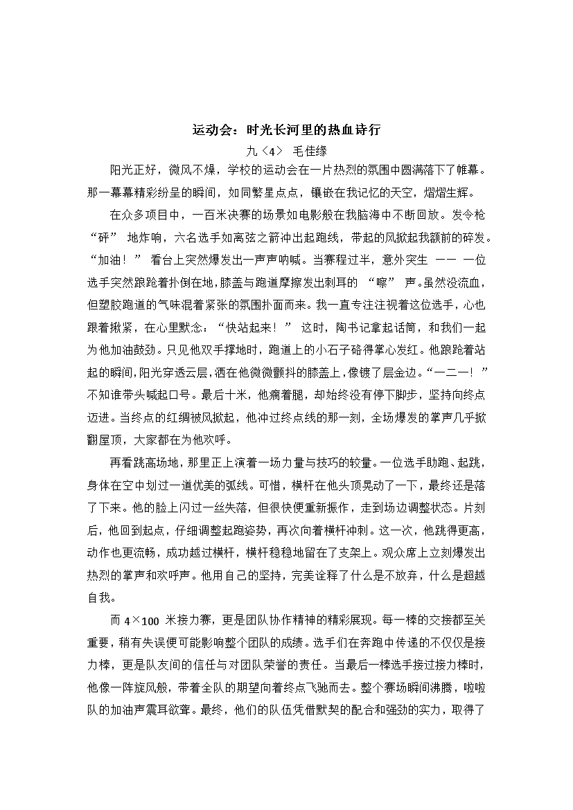 南京市江宁高新区中学第八届田径运动会九年级征文