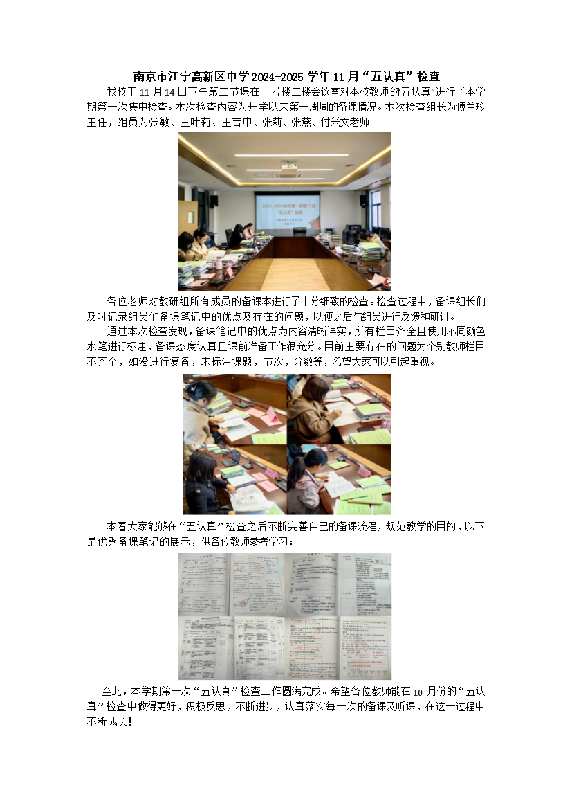 南京市江宁高新区中学2024-2025学年11月“五认真”检查