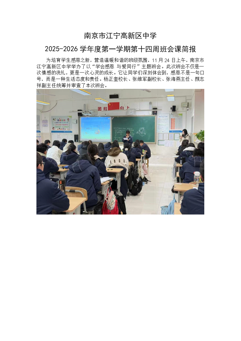 南京市江宁高新区中学2025-2026学年第一学期第14周班会课简报
