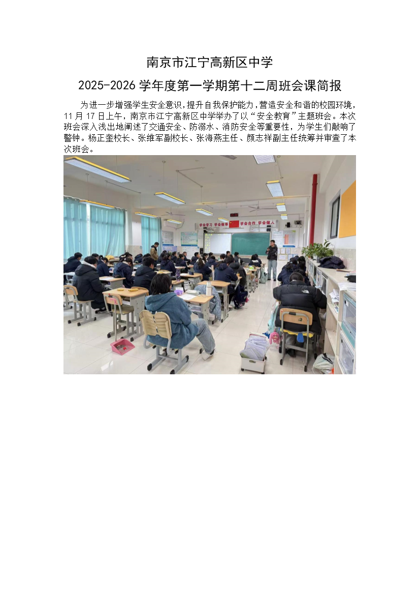 南京市江宁高新区中学2025-2026学年第一学期第12周班会课简报