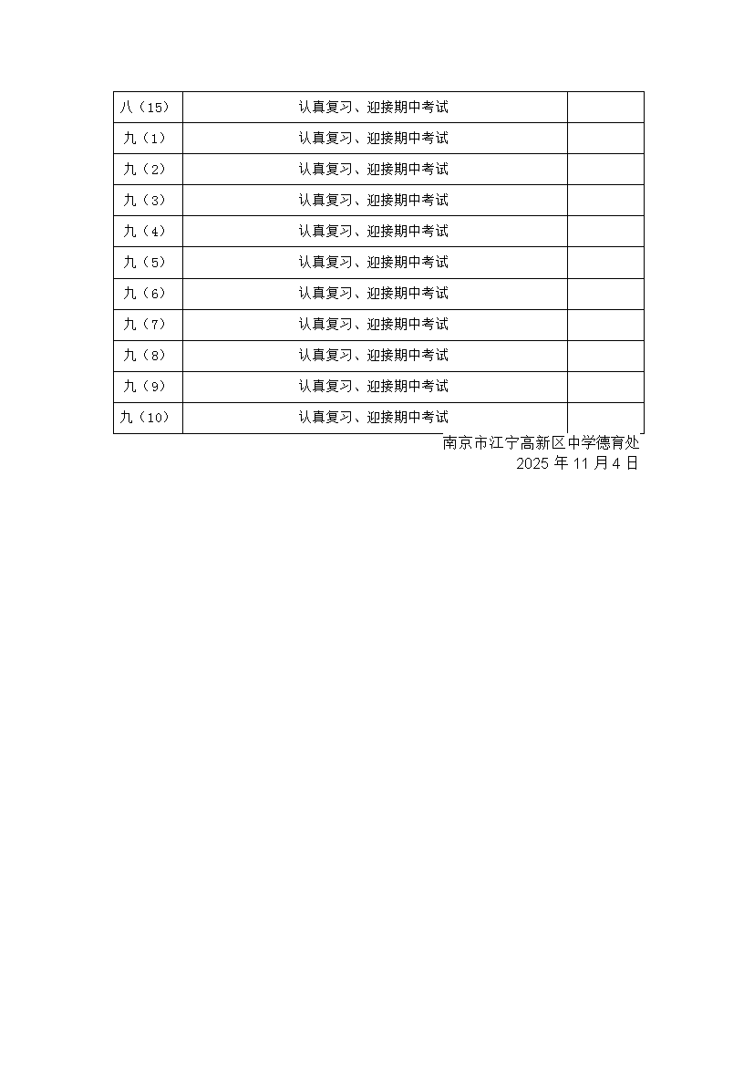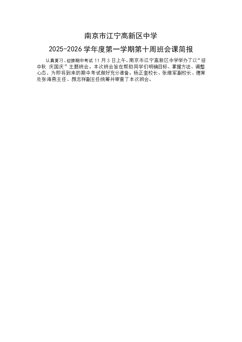 南京市江宁高新区中学2025-2026学年第一学期第10周班会课简报