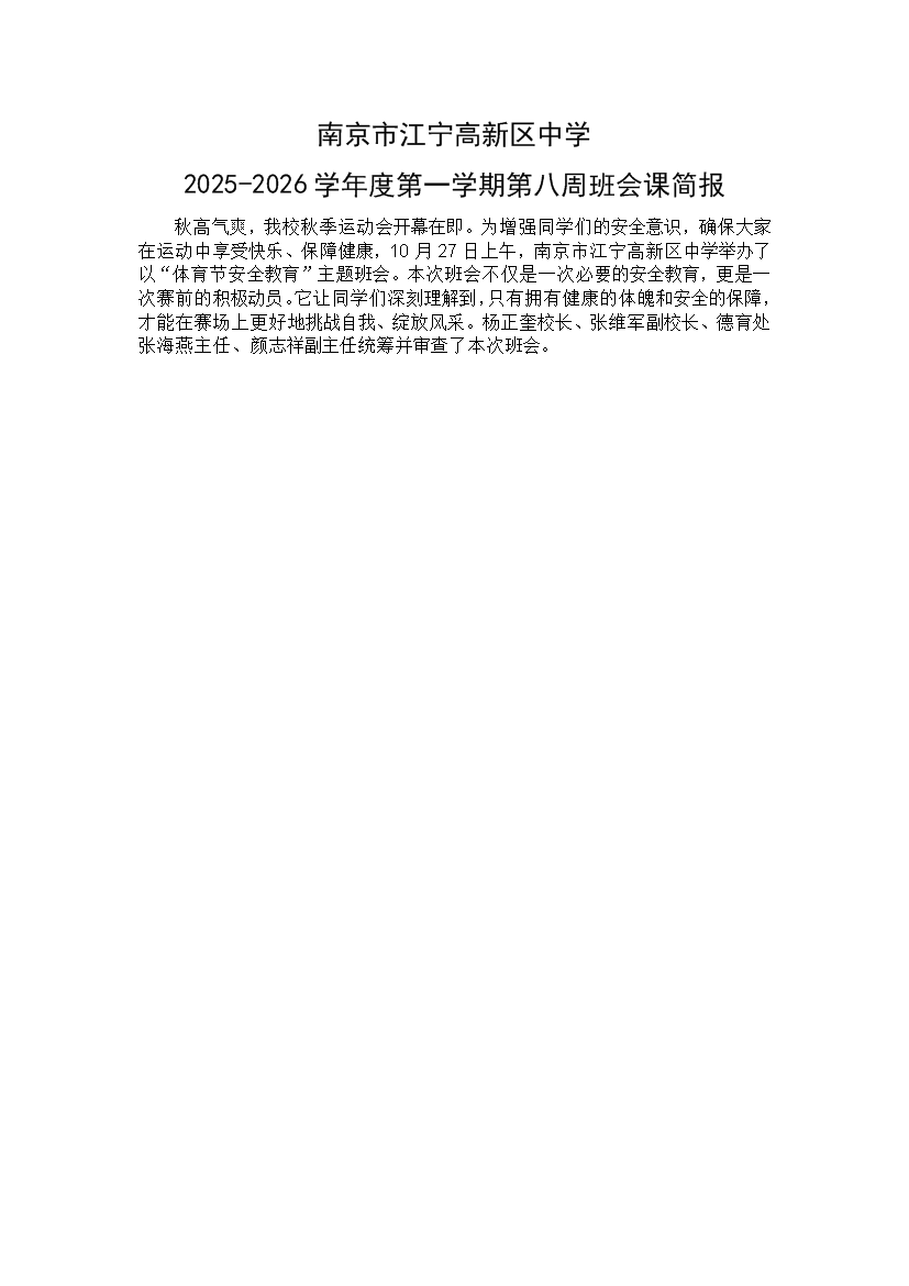 南京市江宁高新区中学2025-2026学年第一学期第8周班会课简报