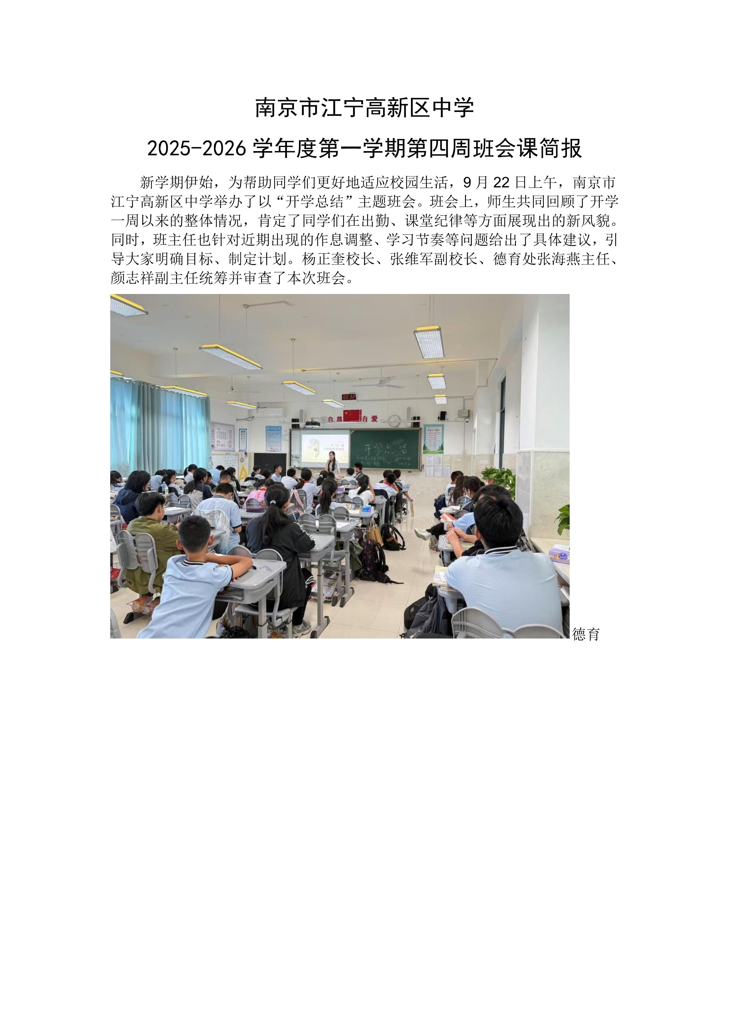 南京市江宁高新区中学2025-2026学年第一学期第4周班会课简报