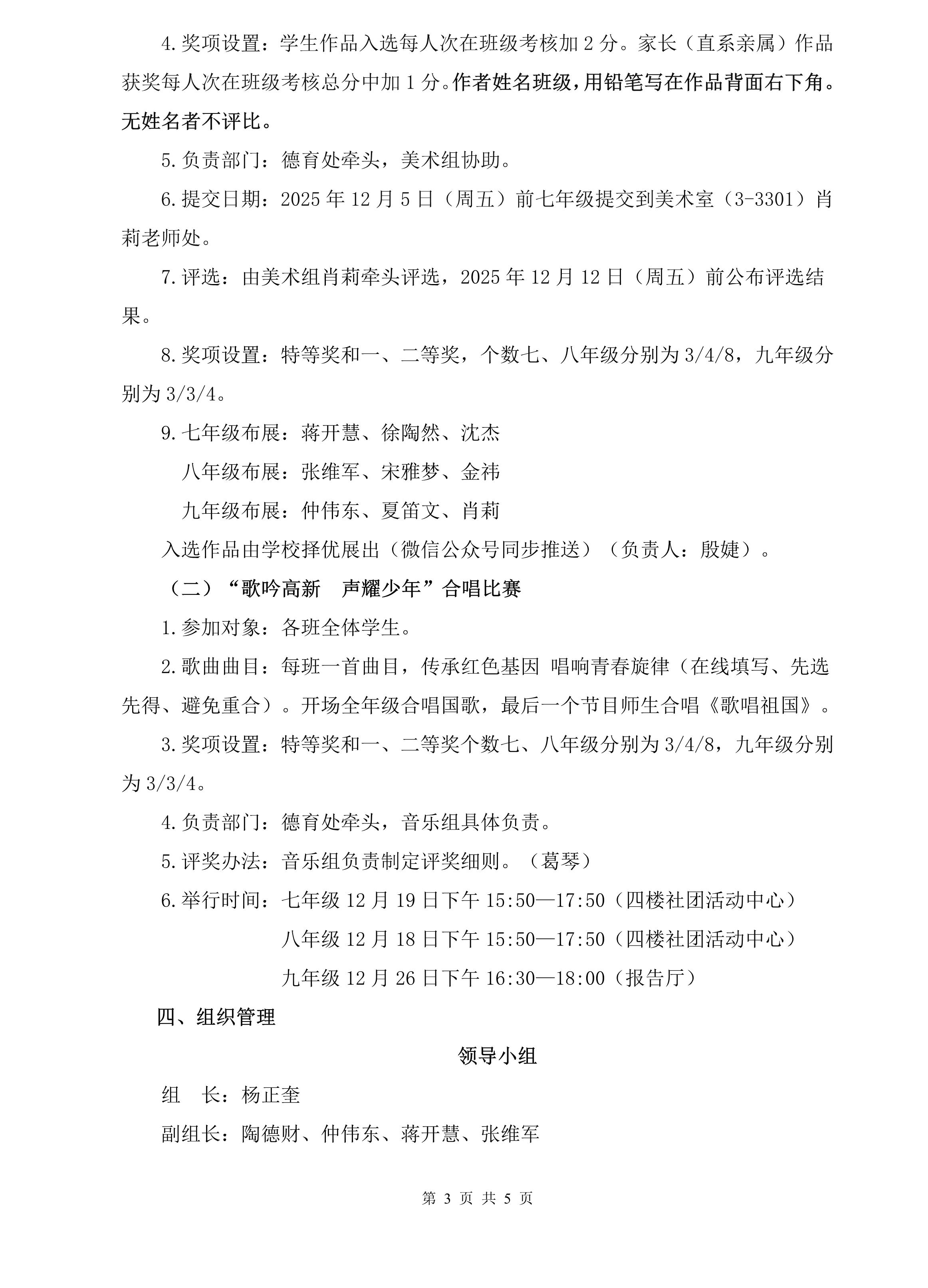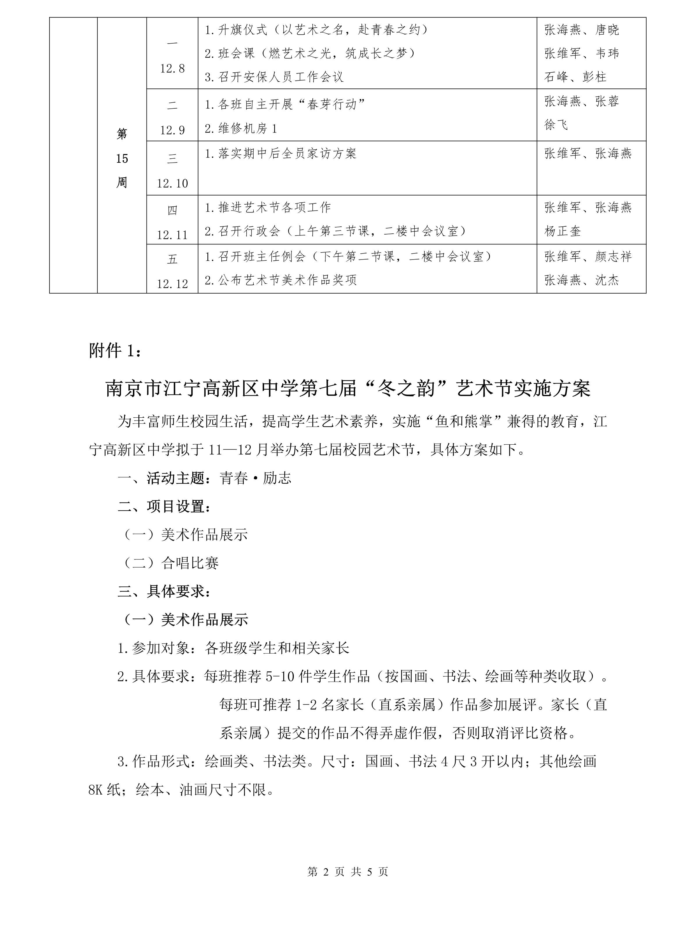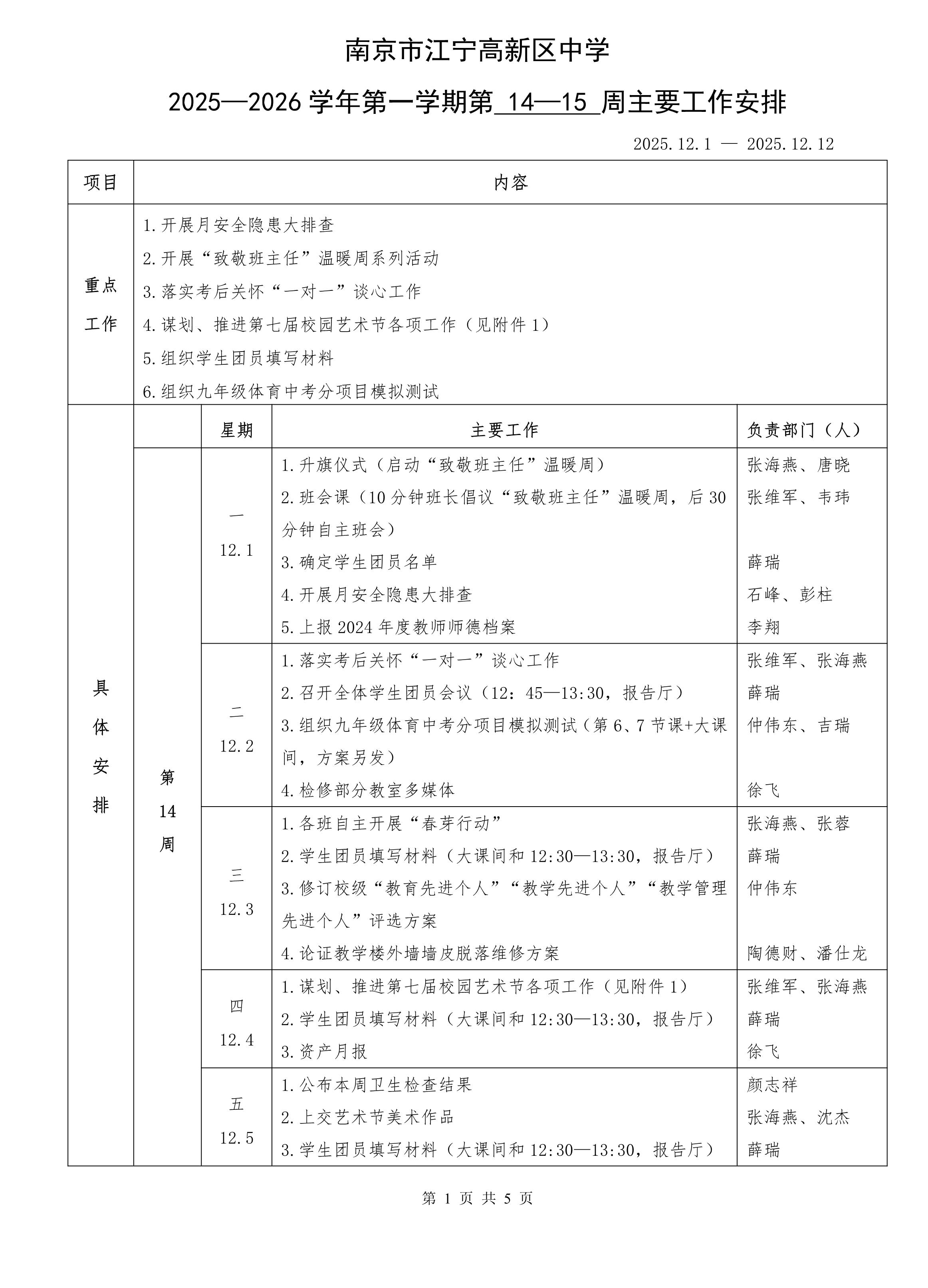 南京市江宁高新区中学2025—2026学年第一学期第14—15周主要工作安排