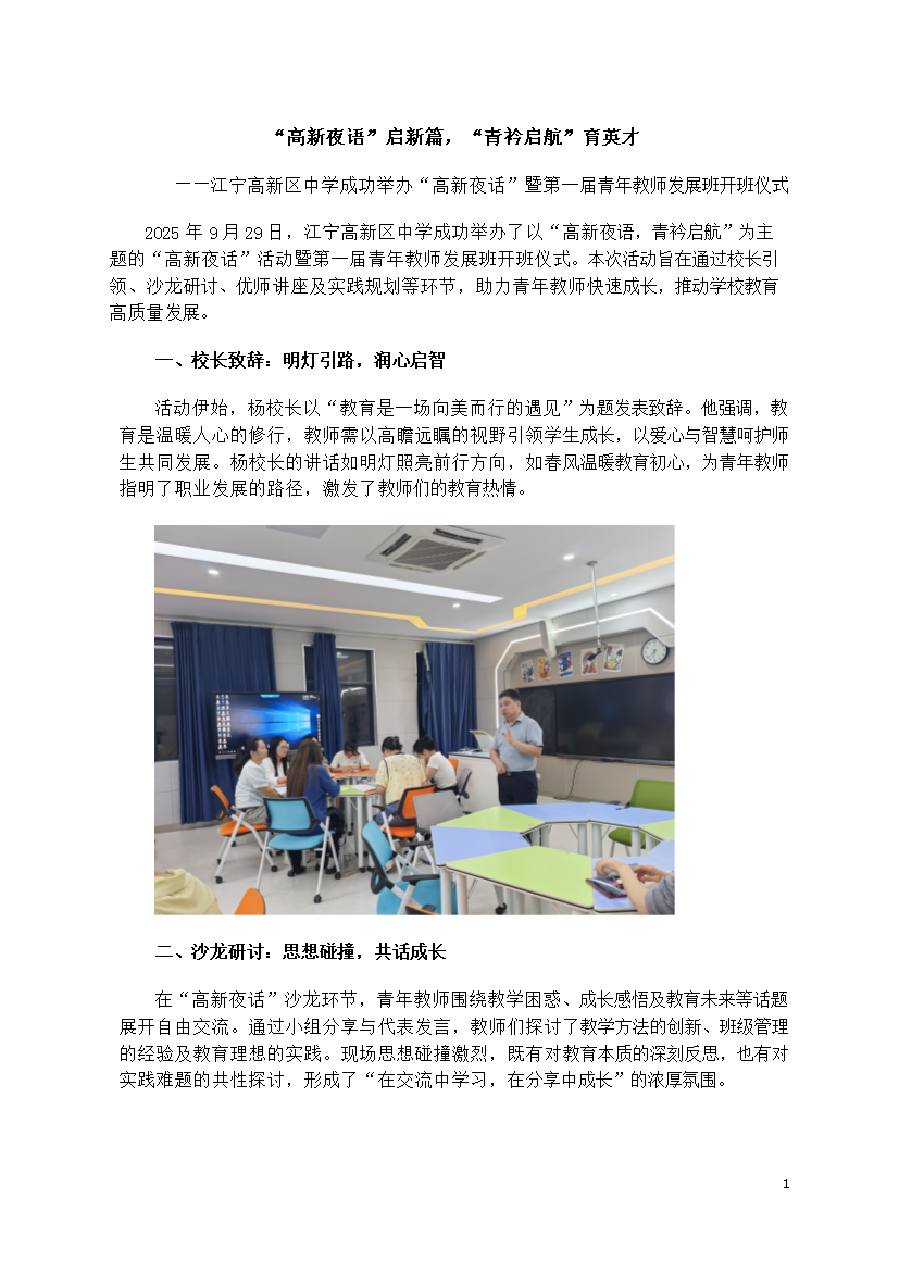 ——江宁高新区中学成功举办“高新夜话”暨第一届青年教师发展班开班仪式