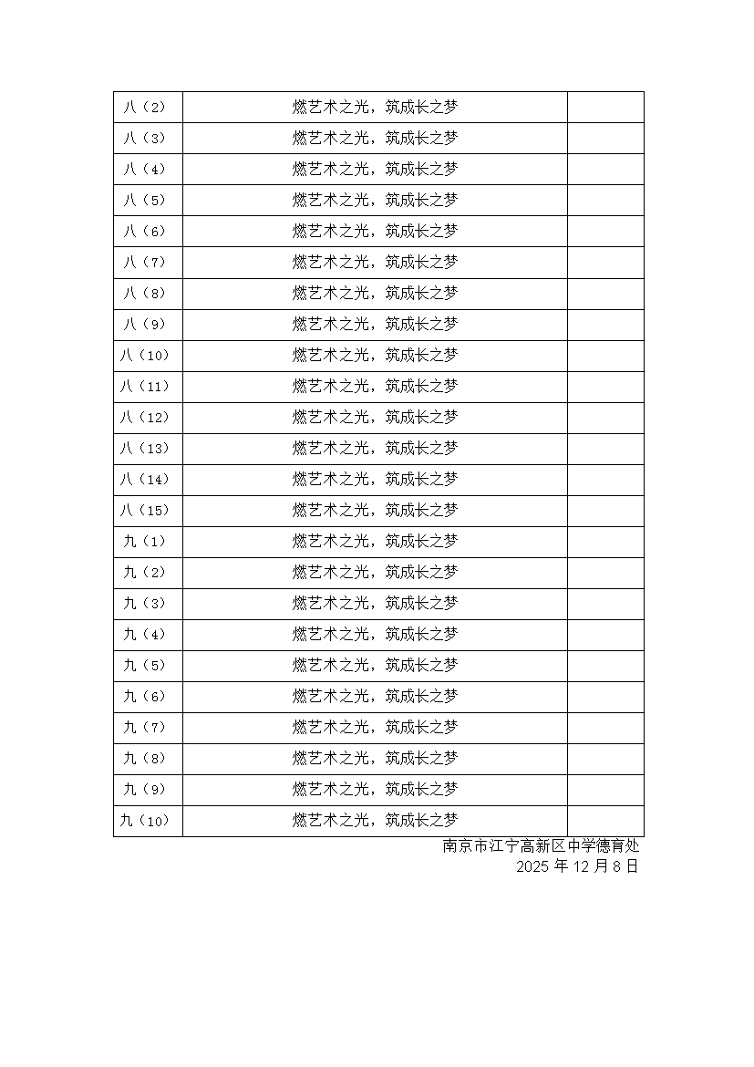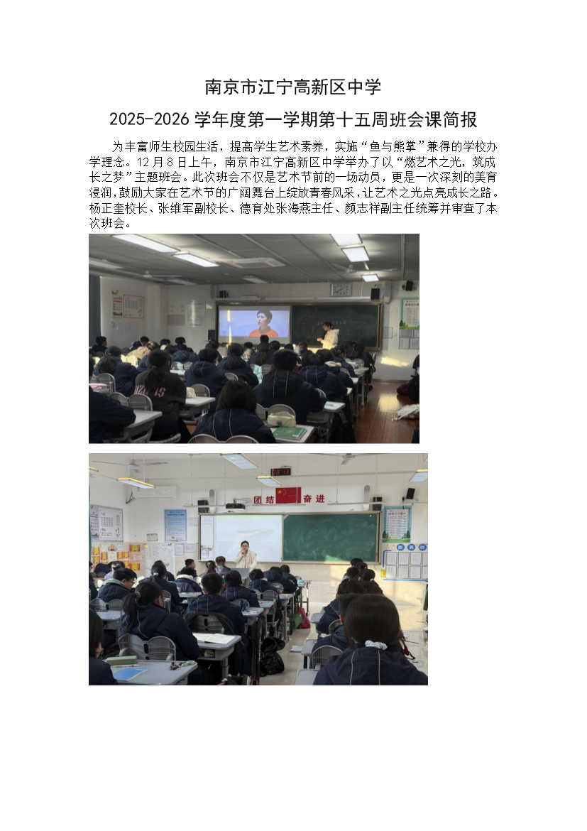 南京市江宁高新区中学2025-2025学年第一学期第15周班会课简报
